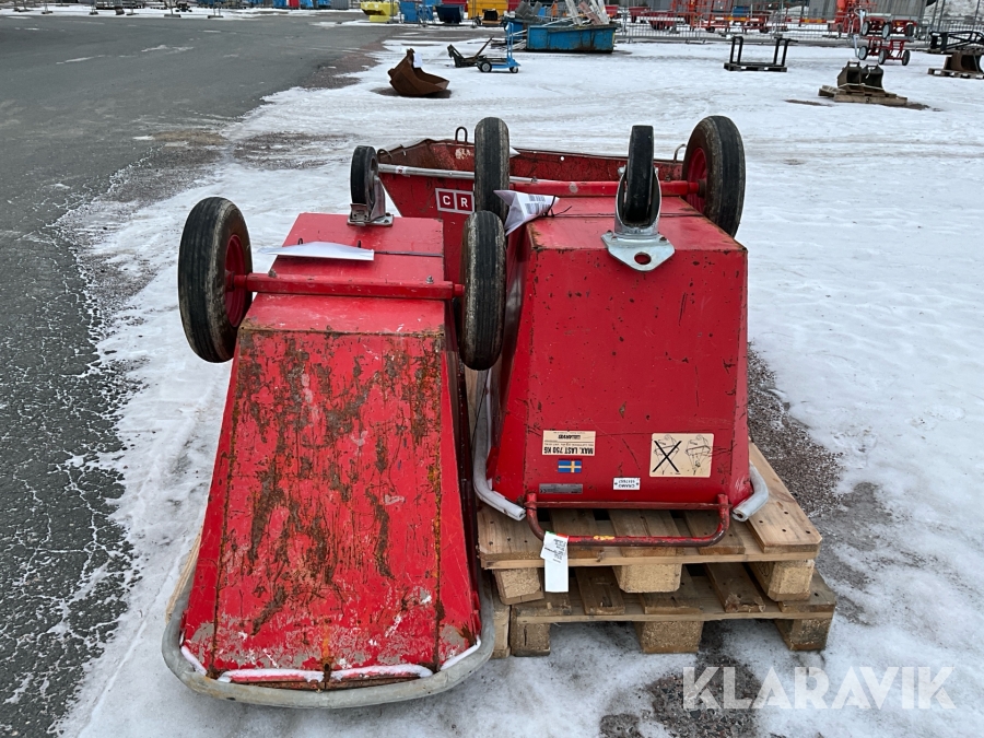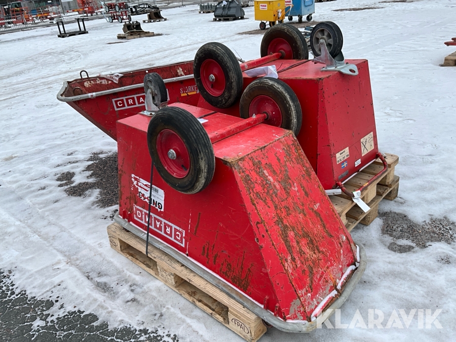 For sheds and containers (10 feet and larger), loading assistance can be purchased. Payment is made either by invoice or by card at the seller's location. The cost per lift is SEK 500 + VAT.