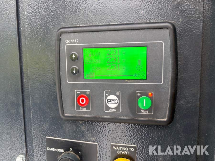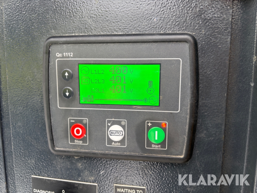 En inre linning i generatorn har gått sönder vilket kräver ett generatorbyte. Den är nu omkopplad nu och ger det den ska, men då kommer den inte orka med tvära uppstarter som till exempel elmotorer eller pumpar på 65-70kw och uppåt