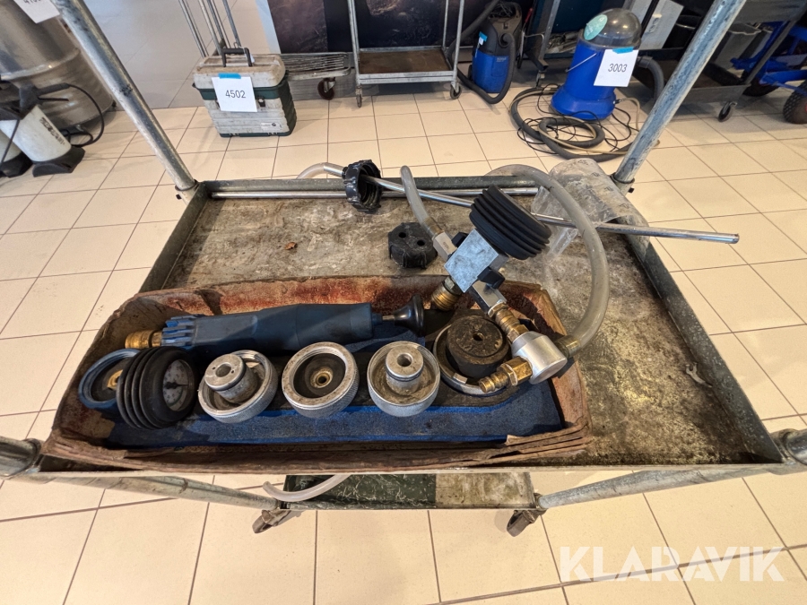 Verkstadsvagn med trycktestare till kylsystem
