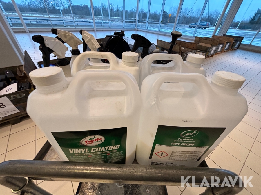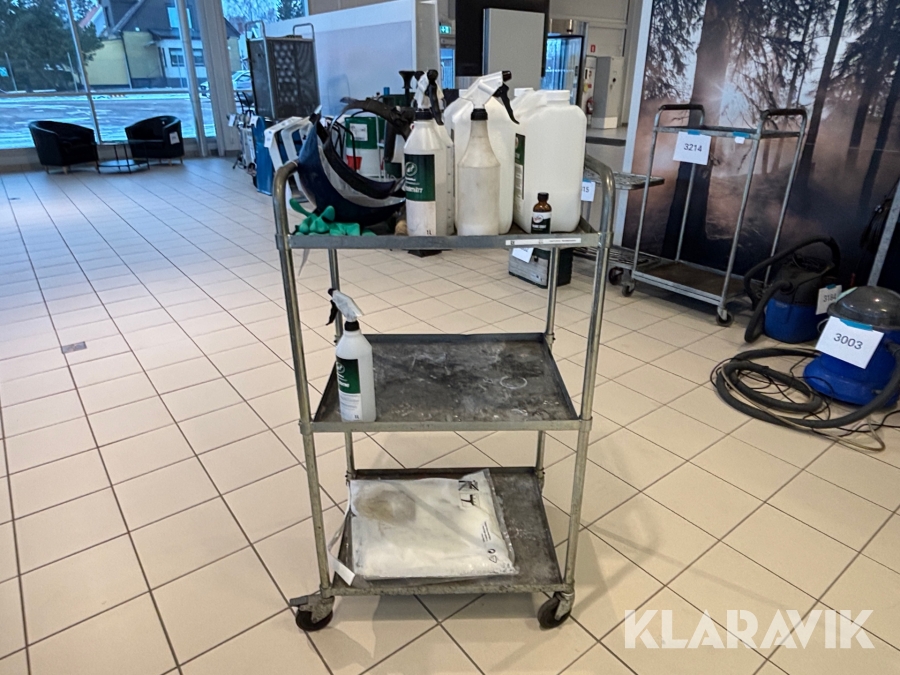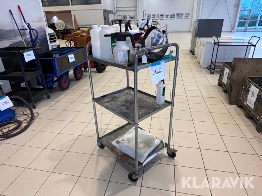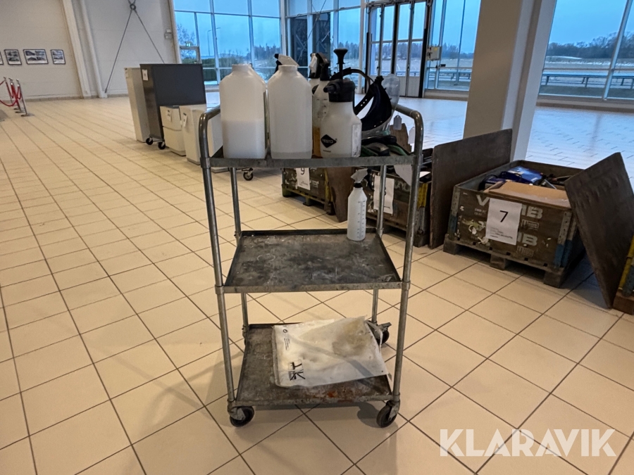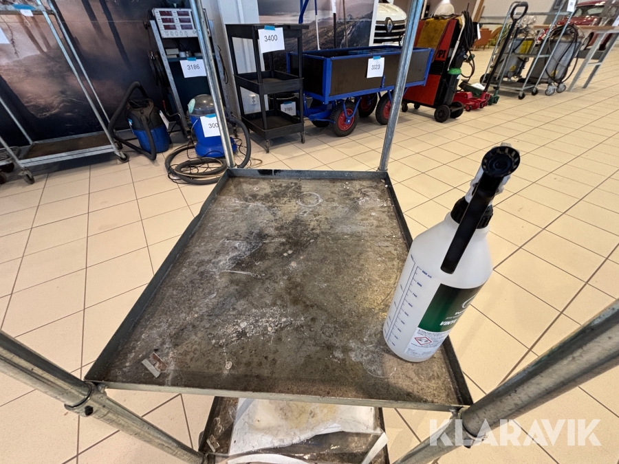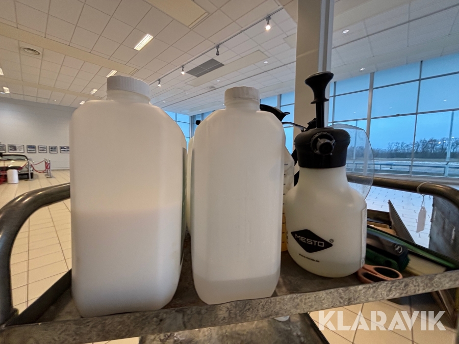 Verkstadsvagn med diverse bilvårdsprodukter