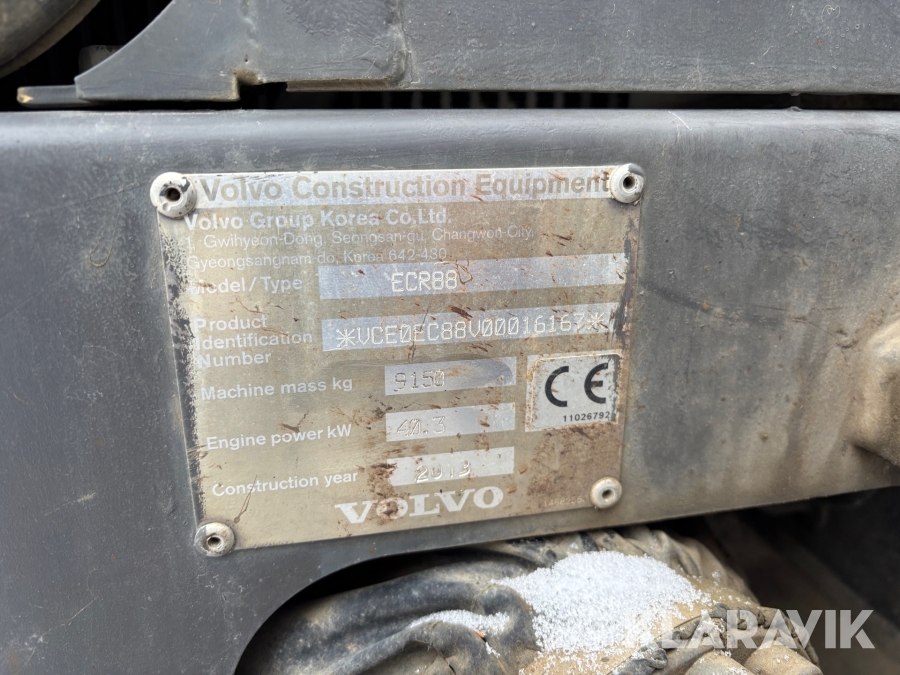 Grävmaskin Volvo ECR88 med Leica 2D, tiltrotator och redskap
