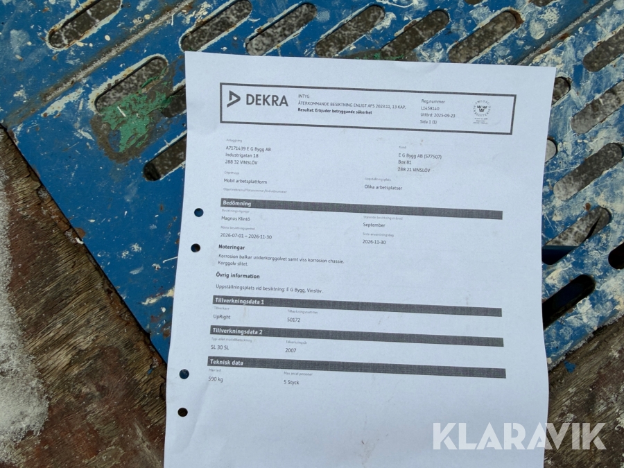 Du som köpare är skyldig att kontrollera objektet vid hämtning. Skiljer sig något avsevärt jämfört med informationen på klaravik.se? Kontakta då Klaravik innan du tar objektet från platsen. Läs fullständiga köpvillkor.