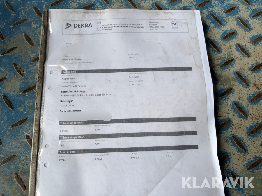 Du som köpare är skyldig att kontrollera objektet vid hämtning. Skiljer sig något avsevärt jämfört med informationen på klaravik.se? Kontakta då Klaravik innan du tar objektet från platsen. Läs fullständiga köpvillkor.