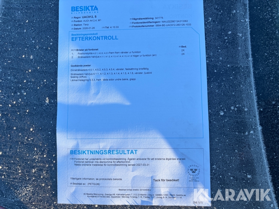 Du som köpare är skyldig att kontrollera objektet vid hämtning. Skiljer sig något avsevärt jämfört med informationen på klaravik.se? Kontakta då Klaravik innan du tar objektet från platsen. Läs fullständiga köpvillkor.