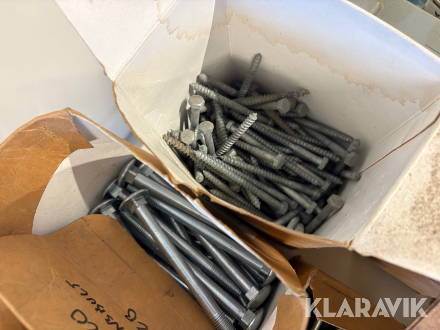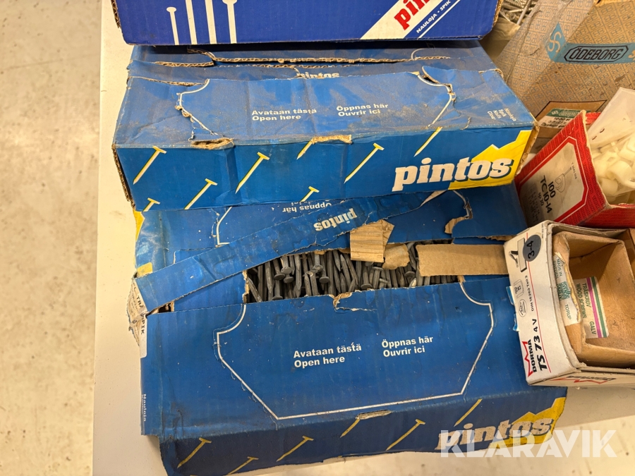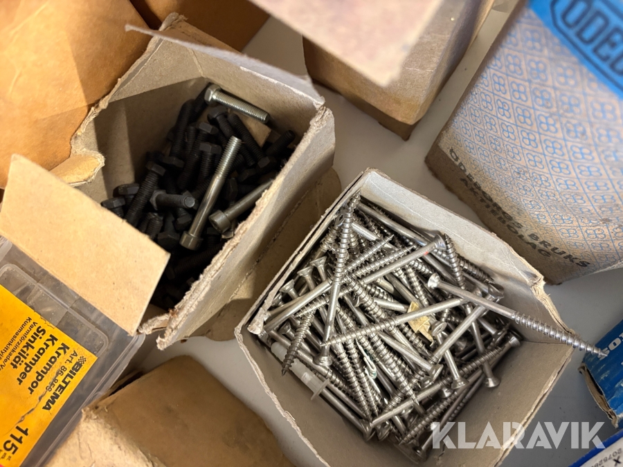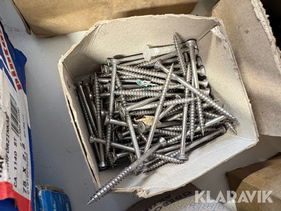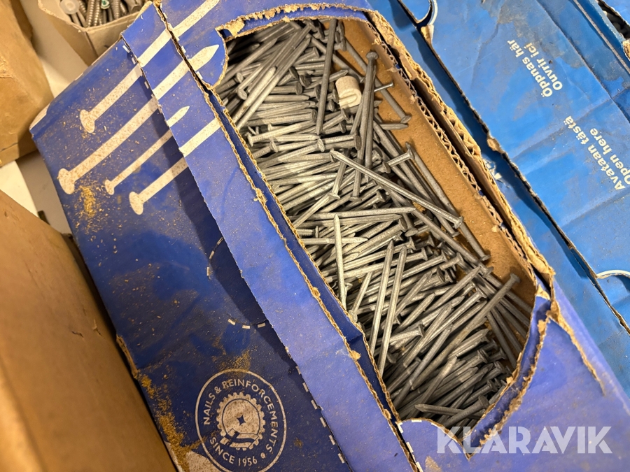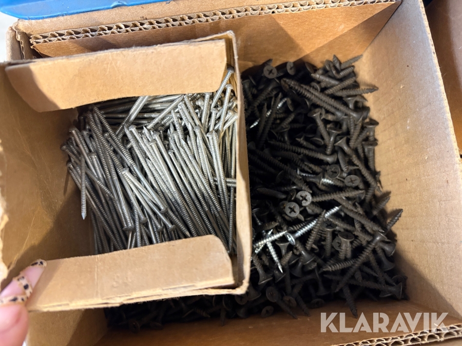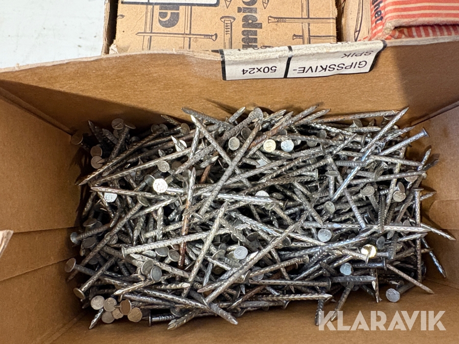 Stort parti med blandade skruv och spik.
