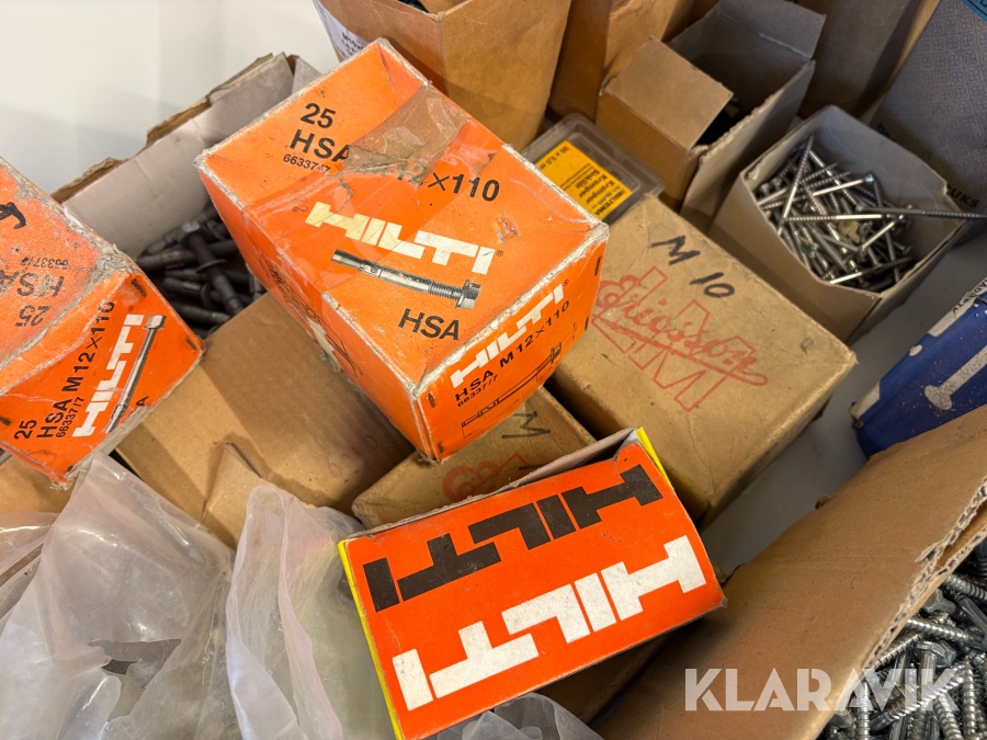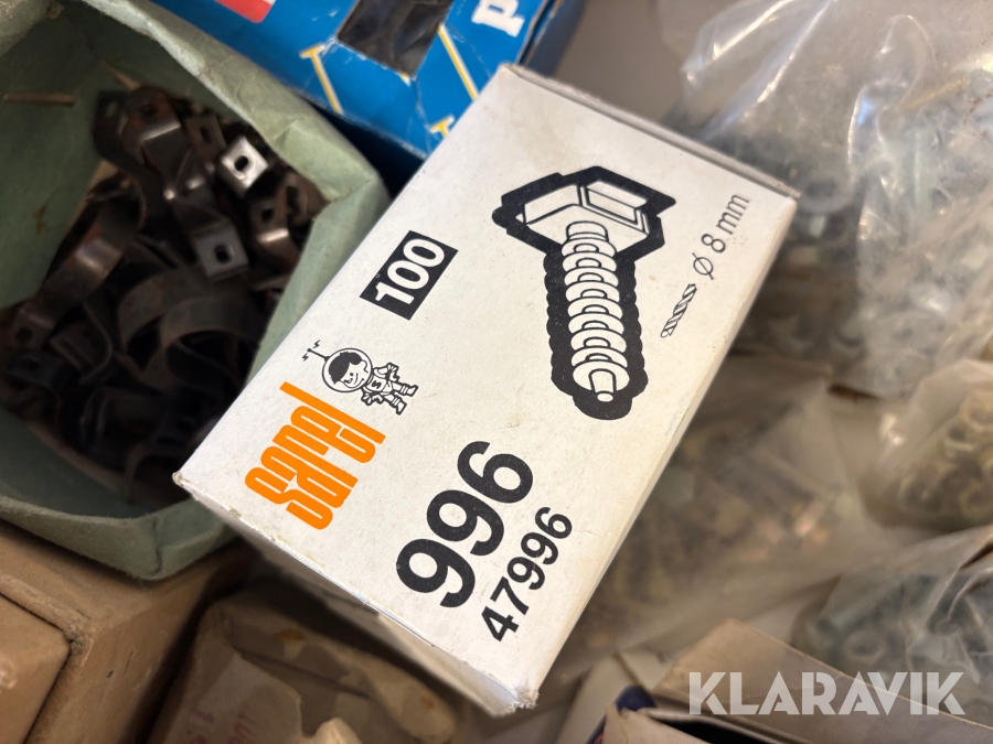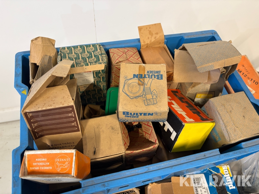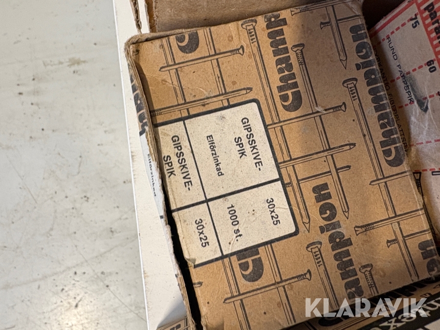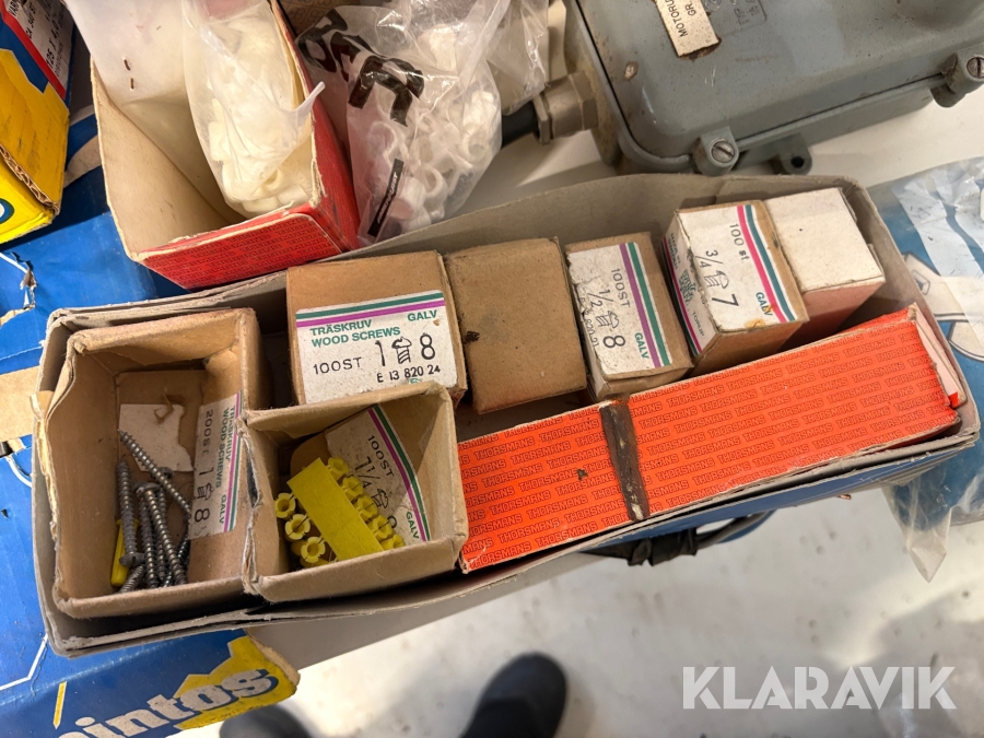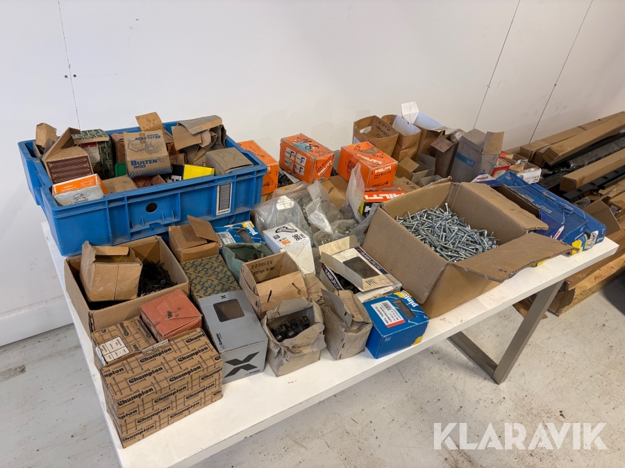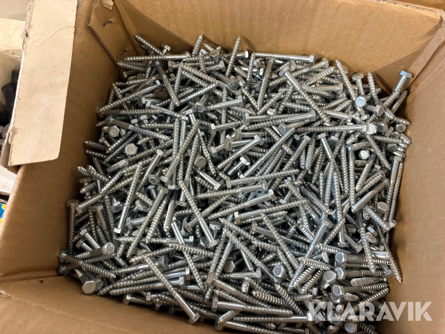 Stort parti med blandade skruv och spik.