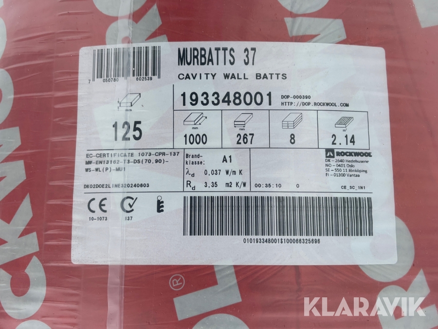 Stenullsisolering Rockwool Murbats 37 100m2