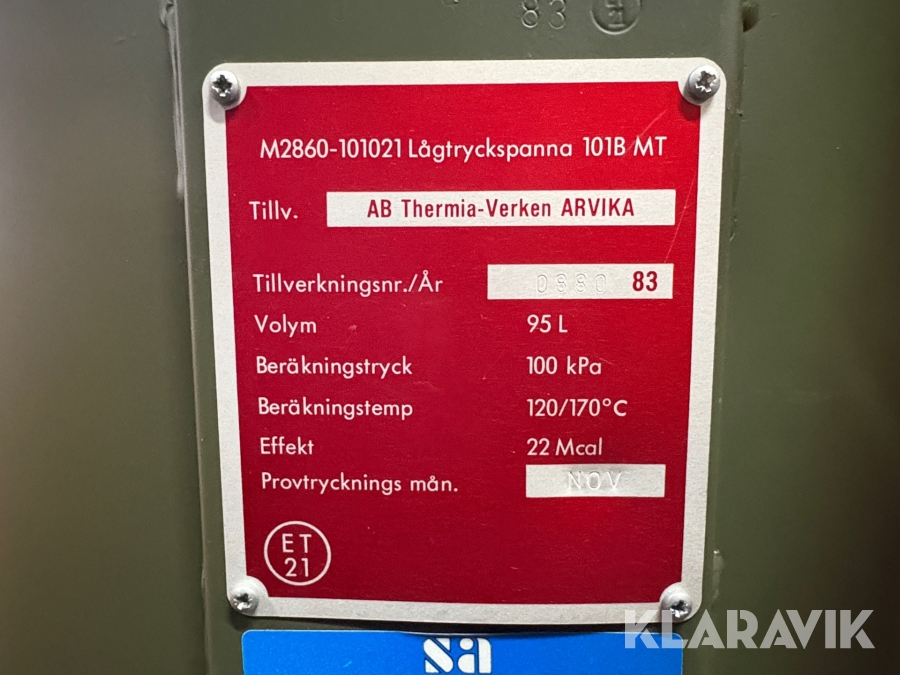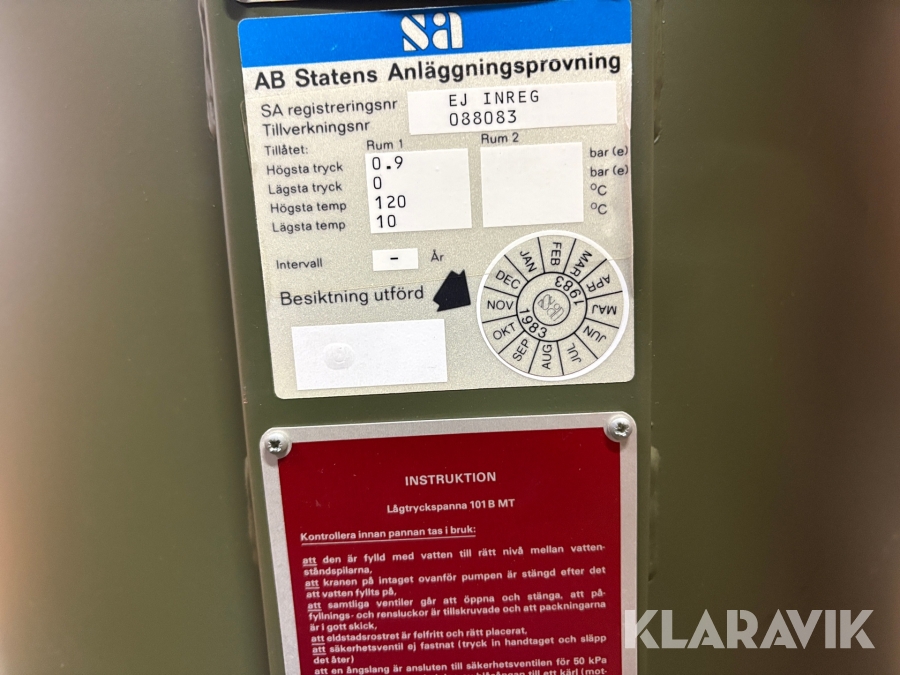 Boka frakt? Det finns ingen specifik information om frakt för just det här objektet, men om du skickar oss en förfrågan via vårt fraktformulär, så undersöker vi möjligheten. Paket, EU-pall eller större maskin? Klaravik har fraktavtal med Schenker och i de fall vi kan hjälpa till med frakt gäller det objekt som ryms i paket eller inom en EU-pall (upp till 120*80 cm och 990 kg). Det går att beställa frakt inom Sverige, dock inte till utlandet. Vid frakt på större maskiner rekommenderar vi gärna transportföretag som du kan kontakta.