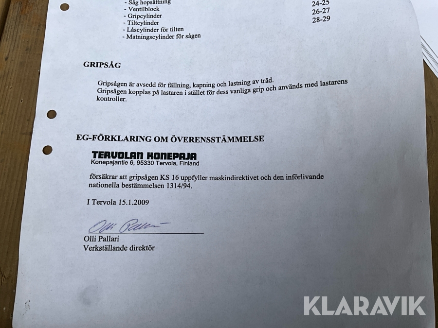 Gripsåg Tervolan Konepaja KS16