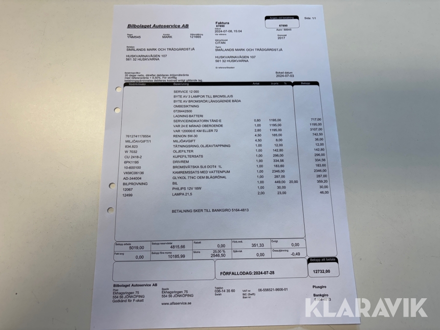 Service 2024.07.03 vid 121665km