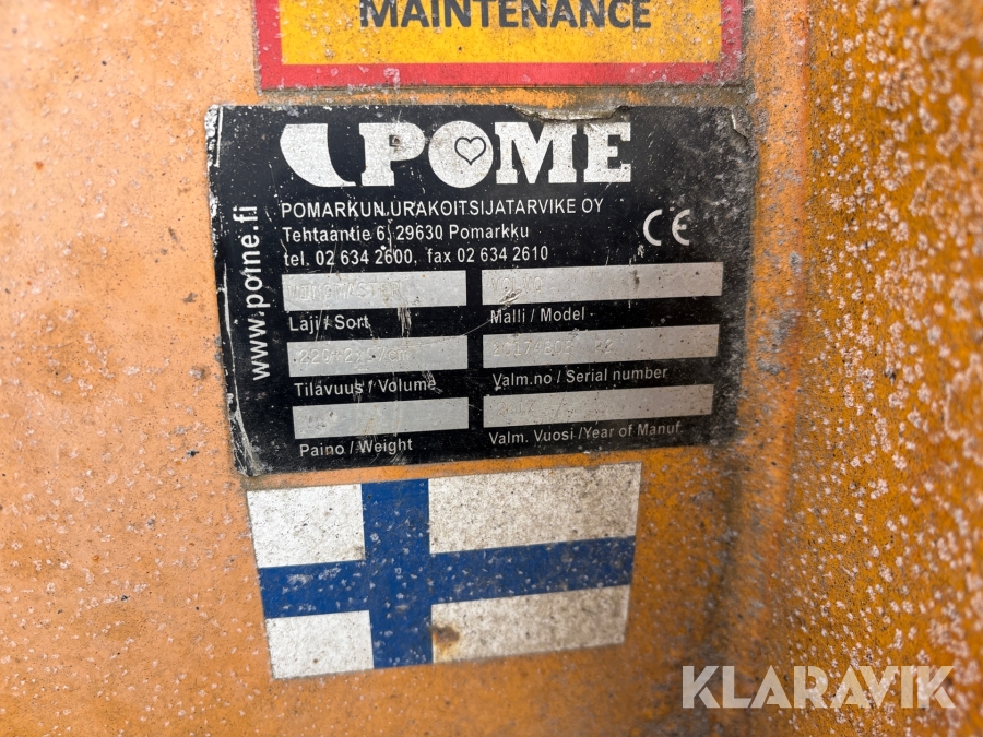 Boka frakt? Det finns ingen specifik information om frakt för just det här objektet, men om du skickar oss en förfrågan via vårt fraktformulär, så undersöker vi möjligheten. Paket, EU-pall eller större maskin? Klaravik har fraktavtal med Schenker och i de fall vi kan hjälpa till med frakt gäller det objekt som ryms i paket eller inom en EU-pall (upp till 120*80 cm och 990 kg). Det går att beställa frakt inom Sverige, dock inte till utlandet. Vid frakt på större maskiner rekommenderar vi gärna transportföretag som du kan kontakta.