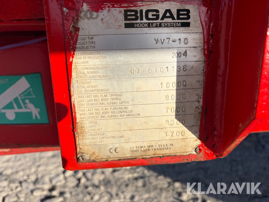 Lastväxlarvagn Bigab 7-10 med flak