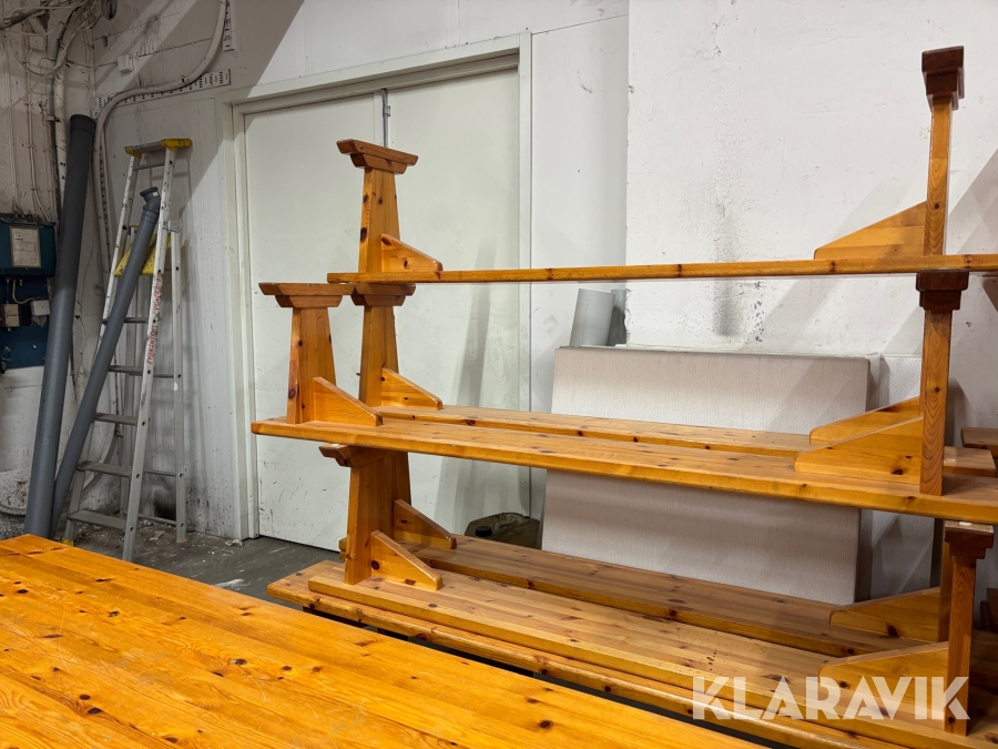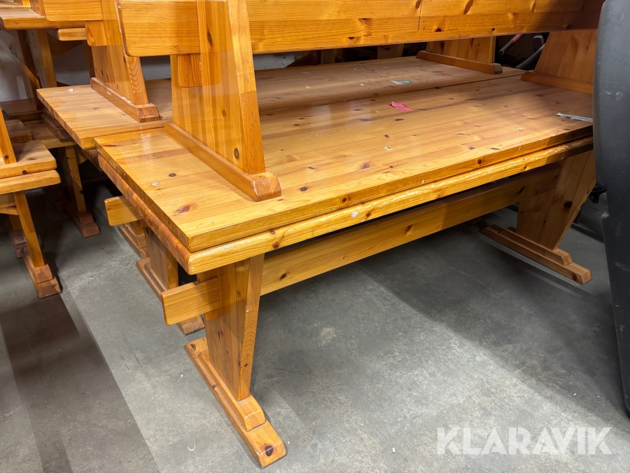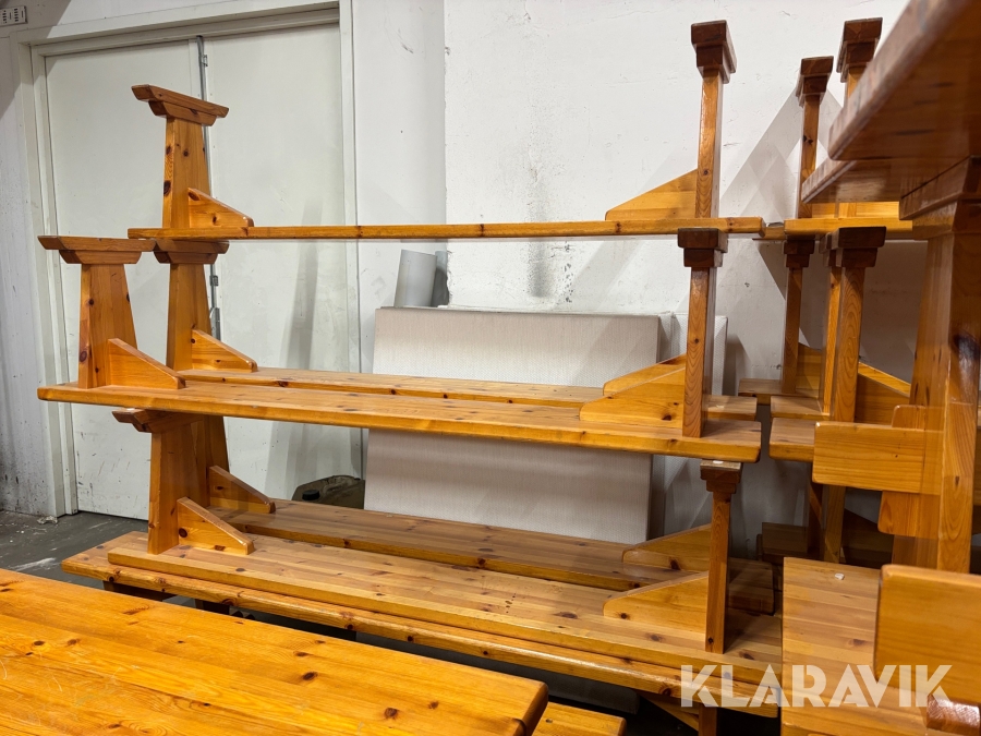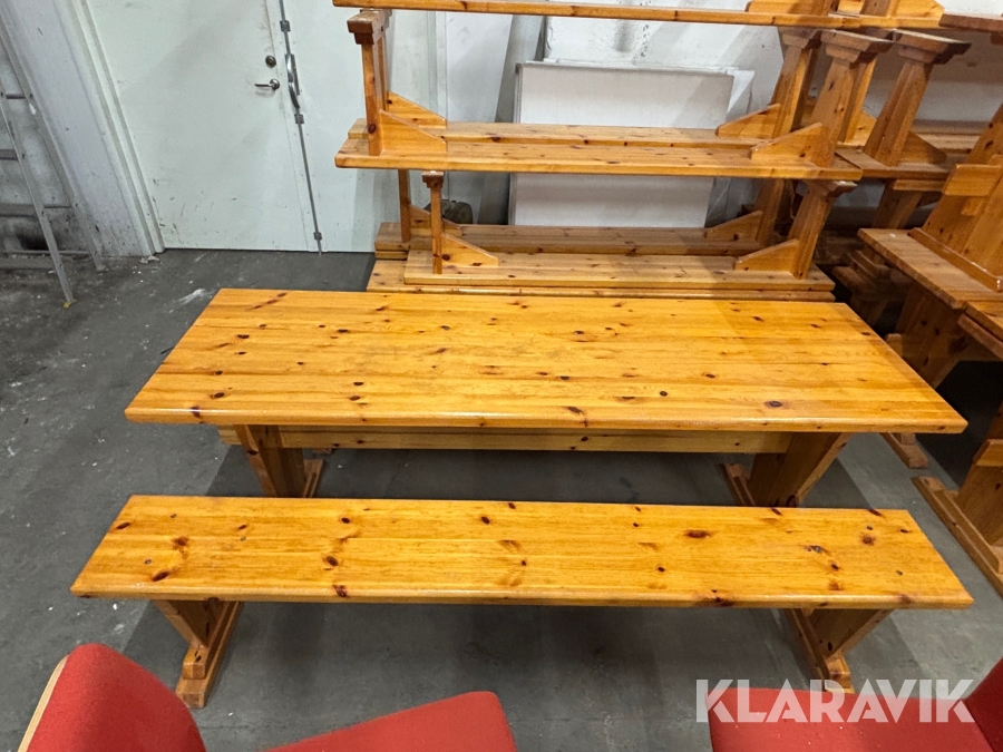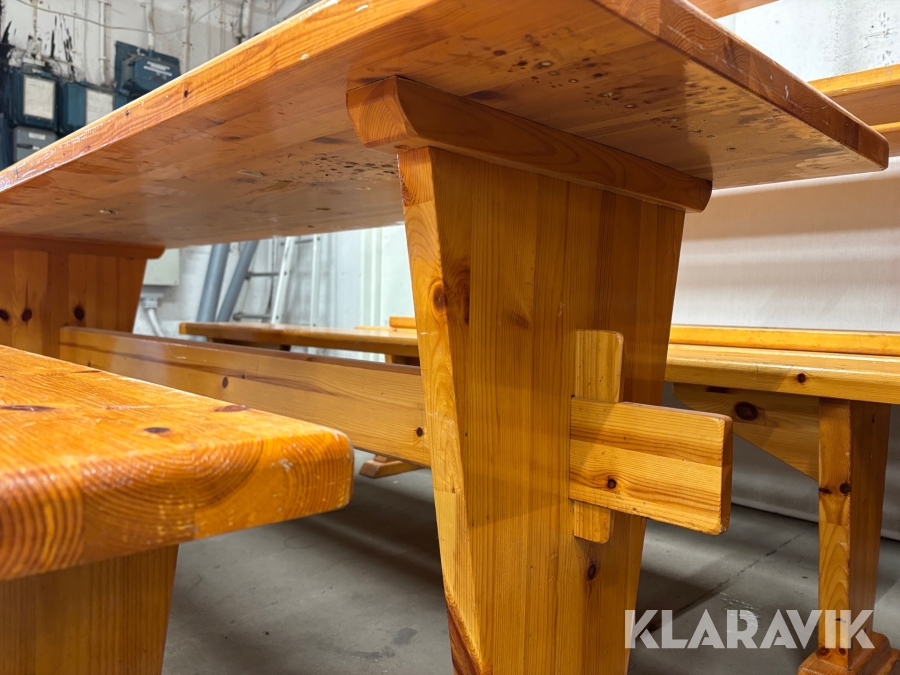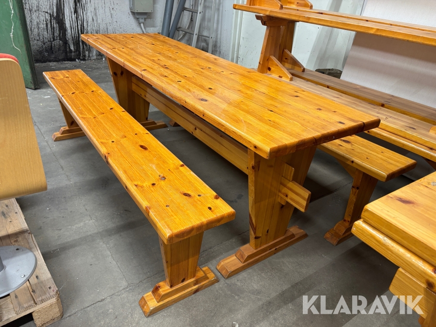 Träbord med bänkar 12 bänkar och 7 bord