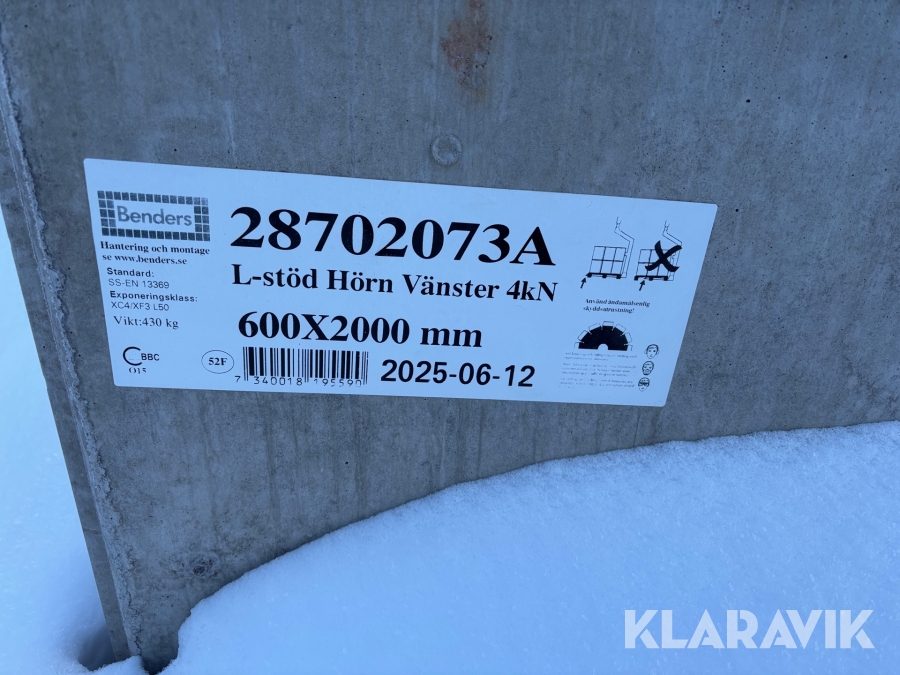 L-stöd fabriksnya Benders 600x2000mm 4kN 14st