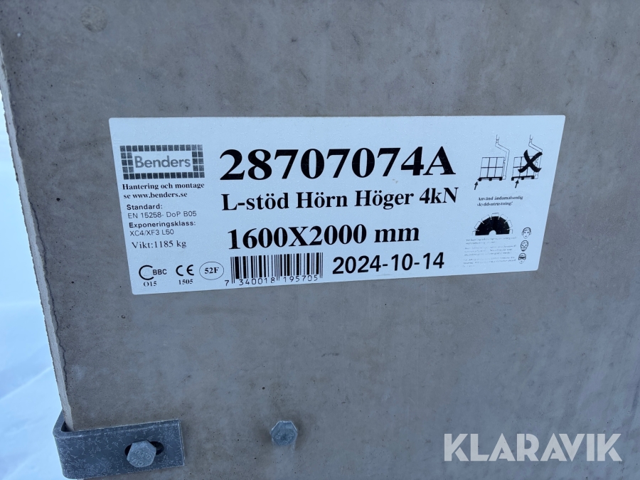 L-stöd fabriksnya Benders 1600x2000 4kN 10st