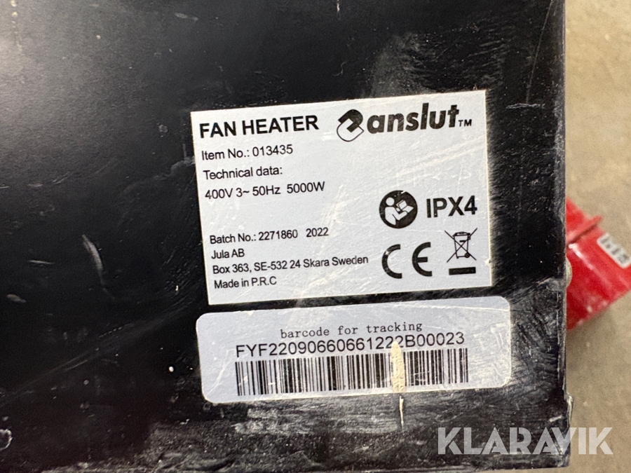 Boka frakt? Det finns ingen specifik information om frakt för just det här objektet, men om du skickar oss en förfrågan via vårt fraktformulär, så undersöker vi möjligheten. Paket, EU-pall eller större maskin? Klaravik har fraktavtal med Schenker och i de fall vi kan hjälpa till med frakt gäller det objekt som ryms i paket eller inom en EU-pall (upp till 120*80 cm och 990 kg). Det går att beställa frakt inom Sverige, dock inte till utlandet. Vid frakt på större maskiner rekommenderar vi gärna transportföretag som du kan kontakta.