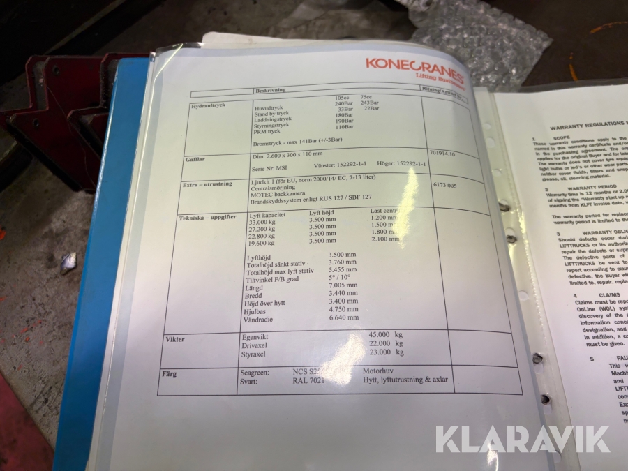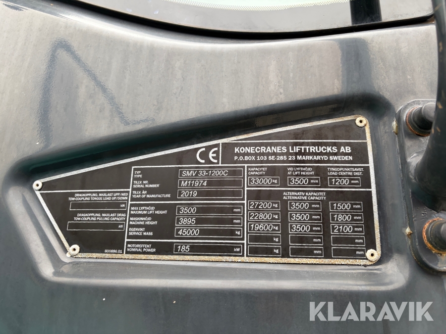 Motviktstruck Konecranes SMV 33-1200C med extra hjul samt gafflar