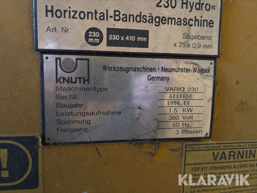 Horisontell bandsåg Knuth Vario 230