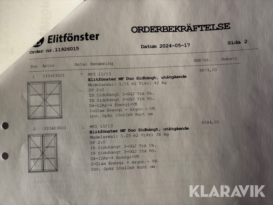 Du som köpare är skyldig att kontrollera objektet vid hämtning. Skiljer sig något avsevärt jämfört med informationen på klaravik.se? Kontakta då Klaravik innan du tar objektet från platsen. Läs fullständiga köpvillkor.