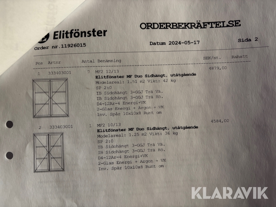 Fönster Elitfönster MF Duo 8st