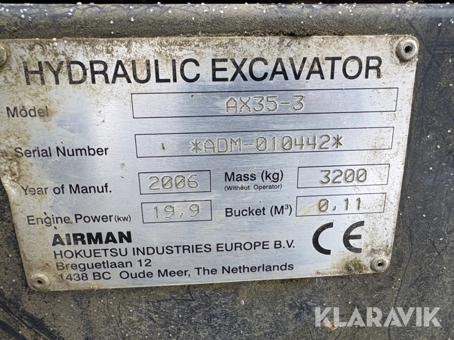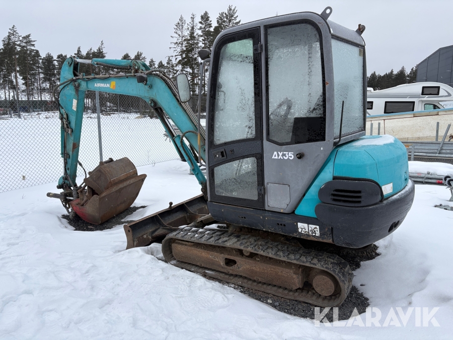 Grävmaskin Airman AX35-3 med flera redskap