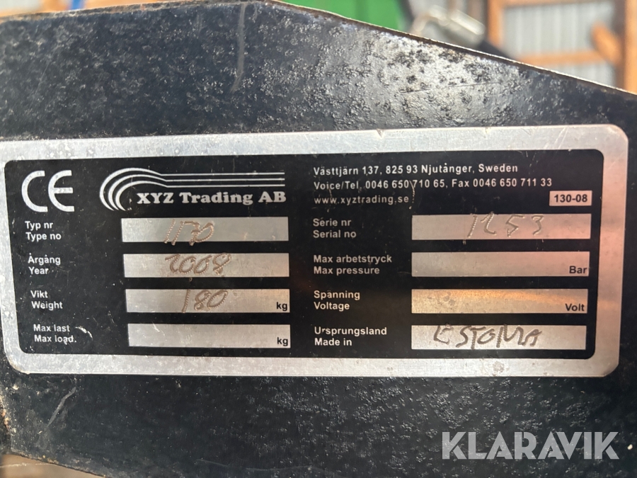 Boka frakt? Det finns ingen specifik information om frakt för just det här objektet, men om du skickar oss en förfrågan via vårt fraktformulär, så undersöker vi möjligheten. Paket, EU-pall eller större maskin? Klaravik har fraktavtal med Schenker och i de fall vi kan hjälpa till med frakt gäller det objekt som ryms i paket eller inom en EU-pall (upp till 120*80 cm och 990 kg). Det går att beställa frakt inom Sverige, dock inte till utlandet. Vid frakt på större maskiner rekommenderar vi gärna transportföretag som du kan kontakta.