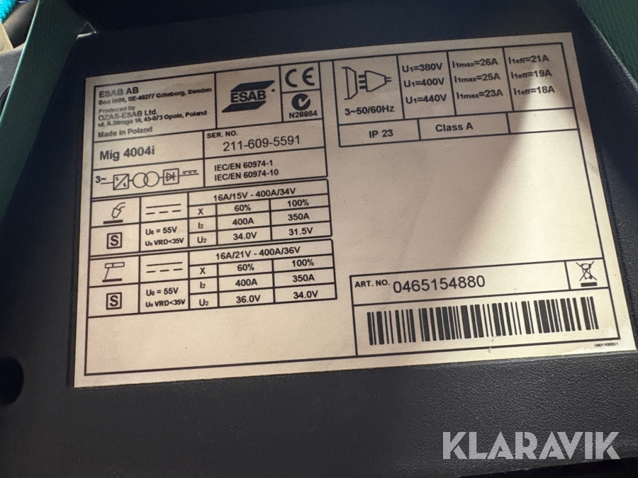 Rörtrådssvets vattenkyld ESAB 4004i