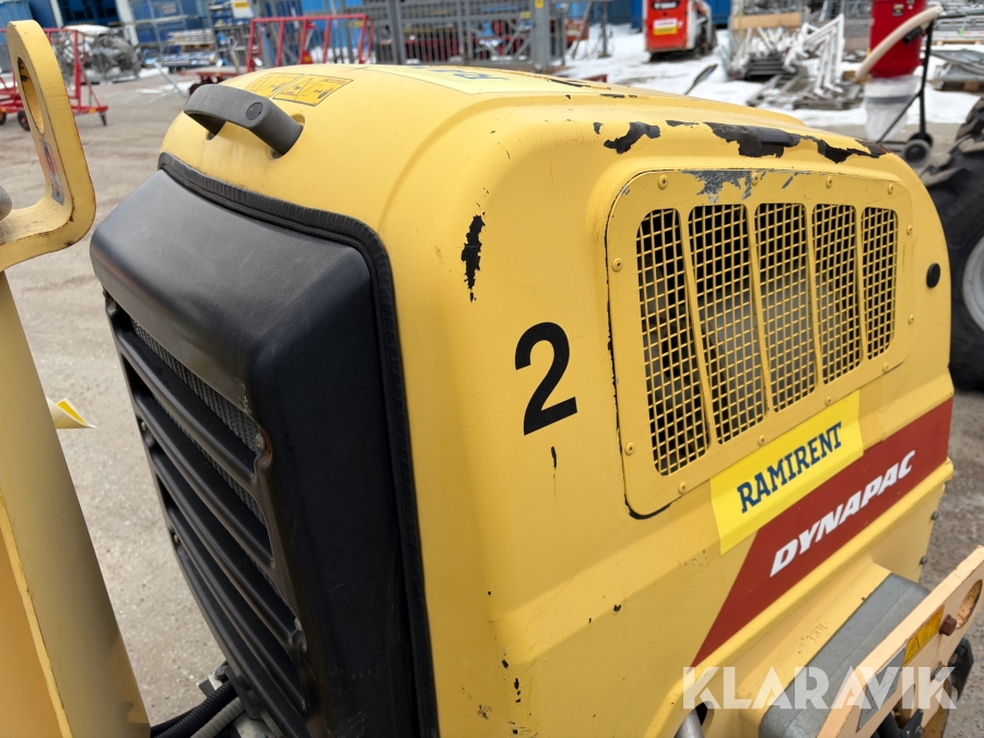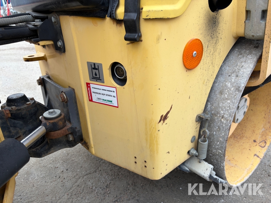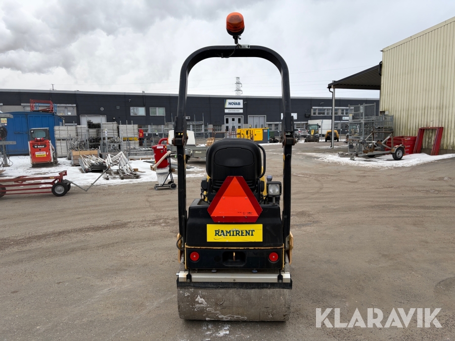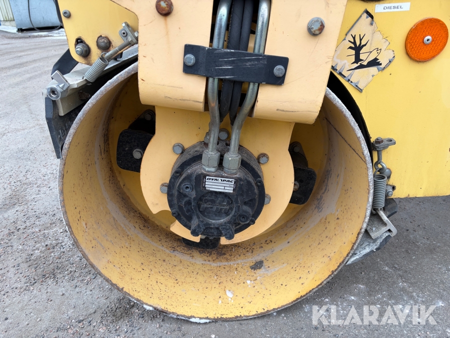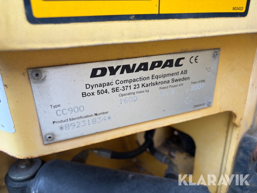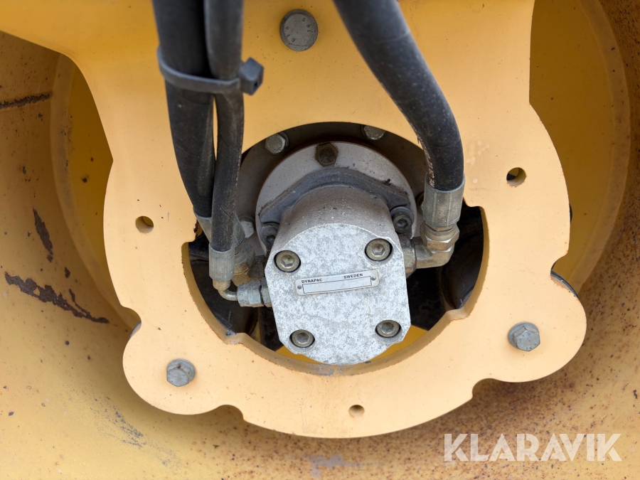 Dynapac CC900 är en kompakt dubbelvibrerande vält med en trumbredd på 900mm och en arbetsvikt på cirka 1600kg, framtagen för mindre asfalteringsjobb som gång- och cykelvägar, småvägar och parkeringsytor. Den drivs av en vattenkyld dieselmotor med en effekt på cirka 18kW, och har hydrostatisk drift i båda riktningar. Vältens vibrationssystem levererar upp till 70Hz i frekvens och en centrifugalkraft på cirka 17kN, vilket ger effektiv packning med ett linjärt tryck på cirka 8,3–9,4kg/cm. Dynapac CC900 är ett driftsäkert och smidigt val för tätbebyggda områden där hög finish krävs.