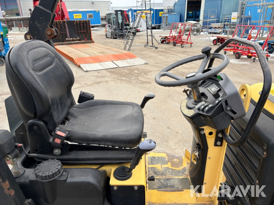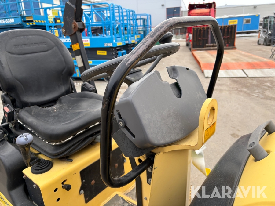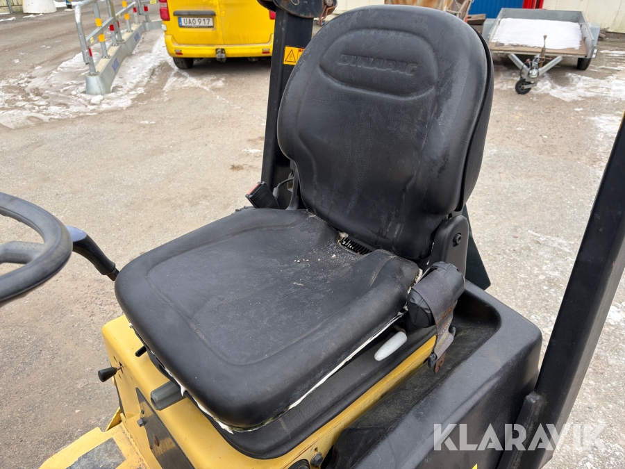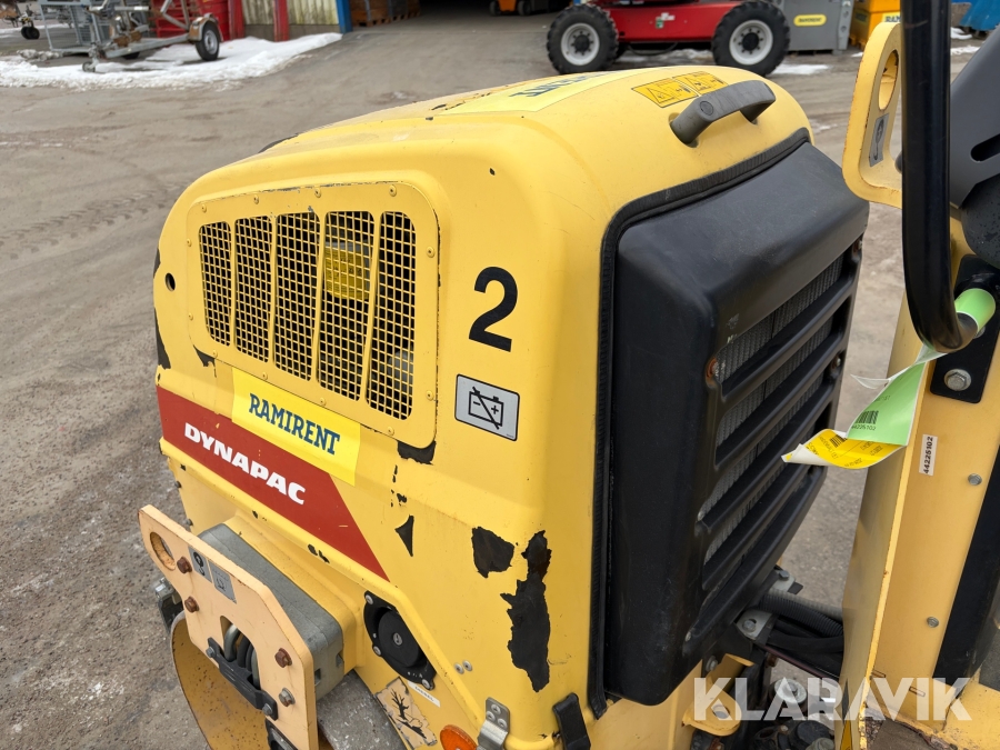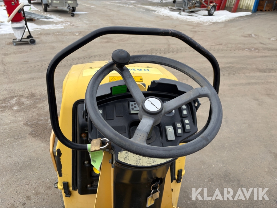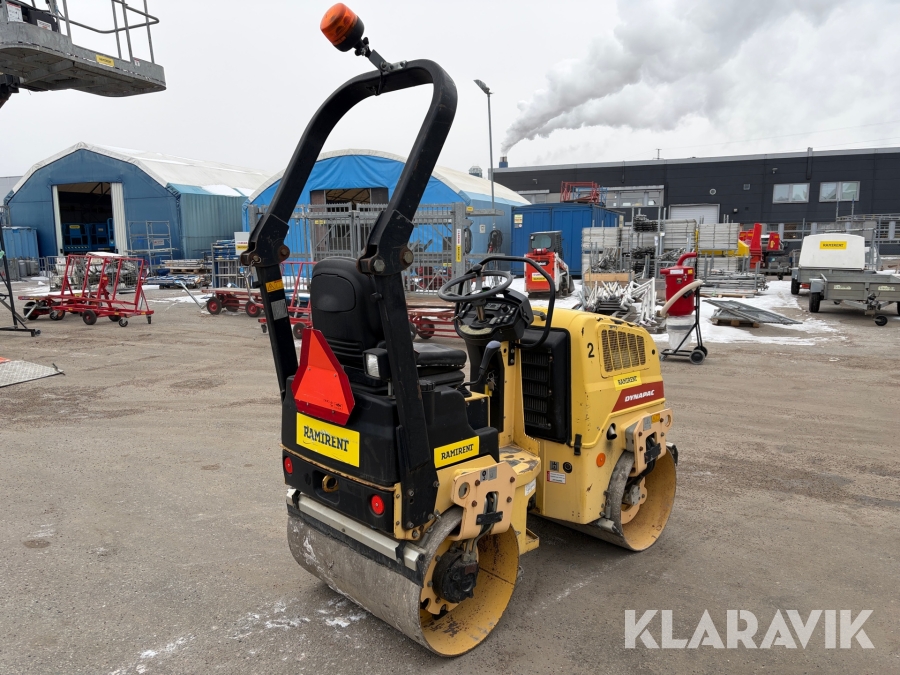 Dynapac CC900 är en kompakt dubbelvibrerande vält med en trumbredd på 900mm och en arbetsvikt på cirka 1600kg, framtagen för mindre asfalteringsjobb som gång- och cykelvägar, småvägar och parkeringsytor. Den drivs av en vattenkyld dieselmotor med en effekt på cirka 18kW, och har hydrostatisk drift i båda riktningar. Vältens vibrationssystem levererar upp till 70Hz i frekvens och en centrifugalkraft på cirka 17kN, vilket ger effektiv packning med ett linjärt tryck på cirka 8,3–9,4kg/cm. Dynapac CC900 är ett driftsäkert och smidigt val för tätbebyggda områden där hög finish krävs.