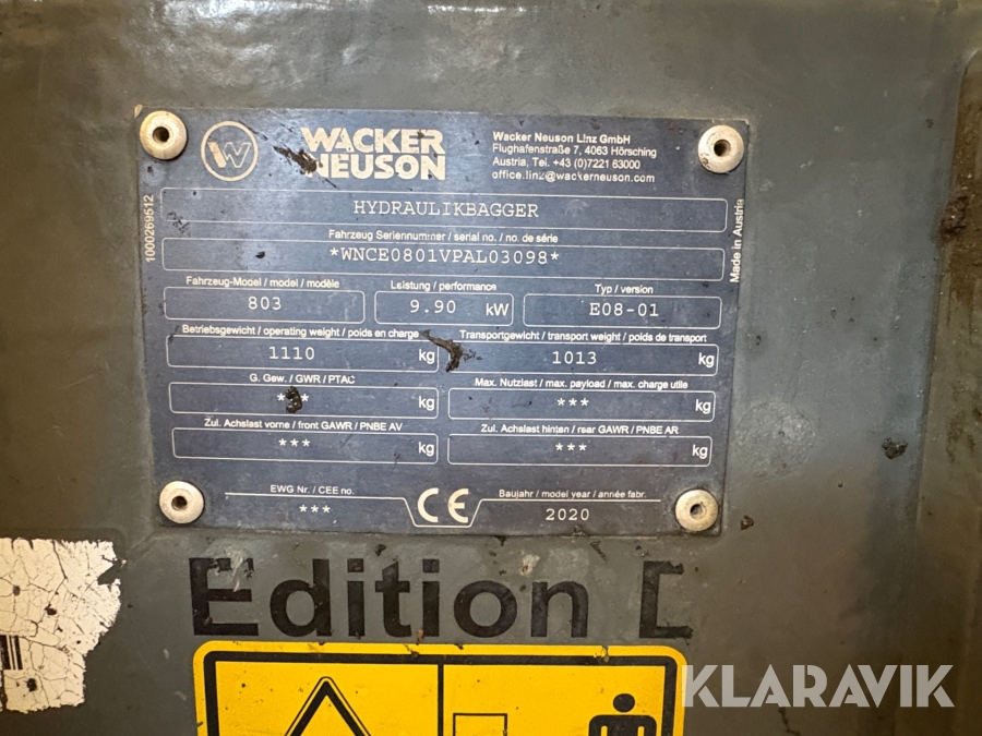 Grävmaskin Wacker Neuson E08-01 med redskap