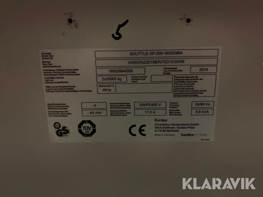 2 st Lagerhiss 65 hyllplatser Kardex remstar Shuttle XP500
