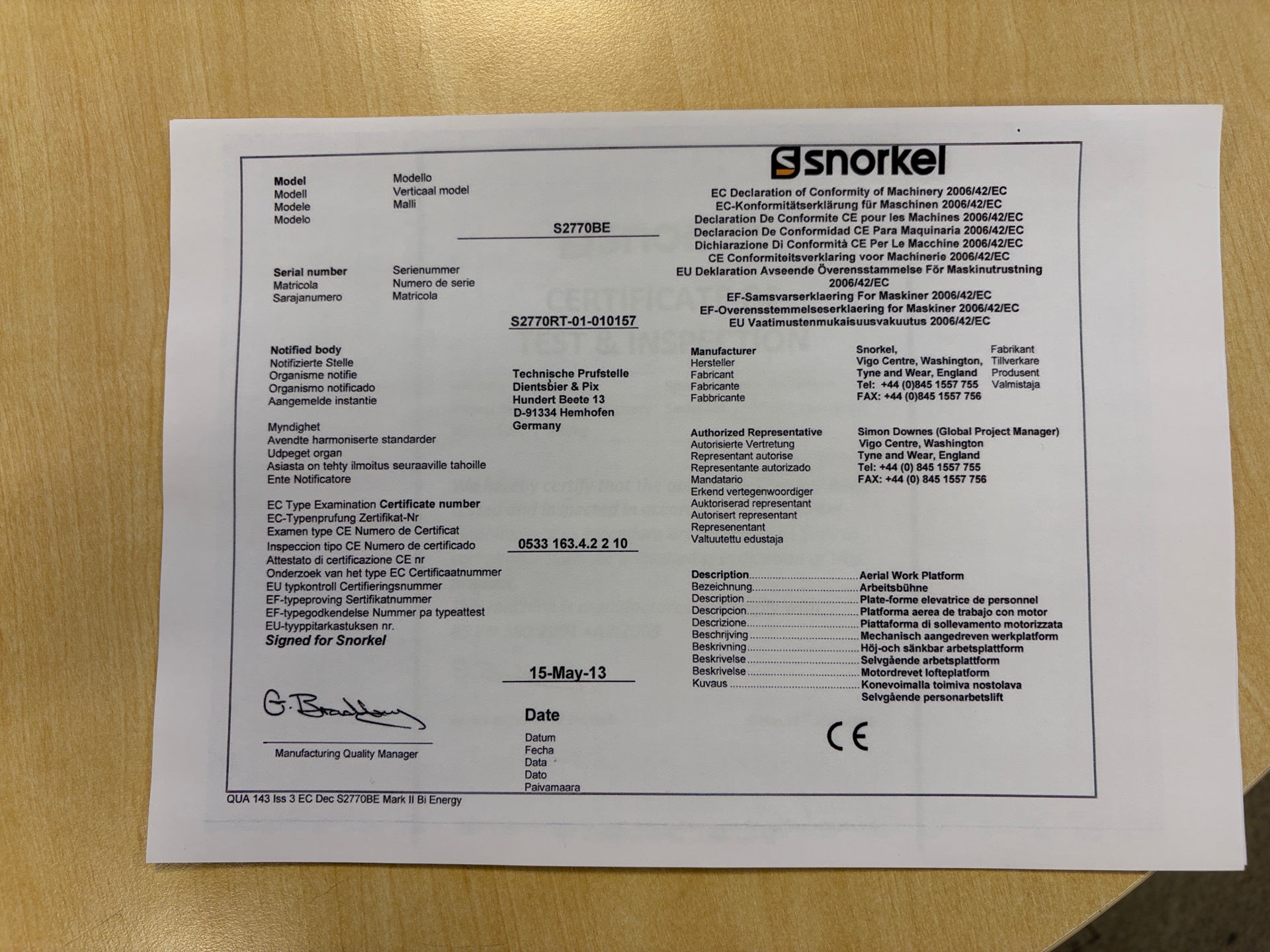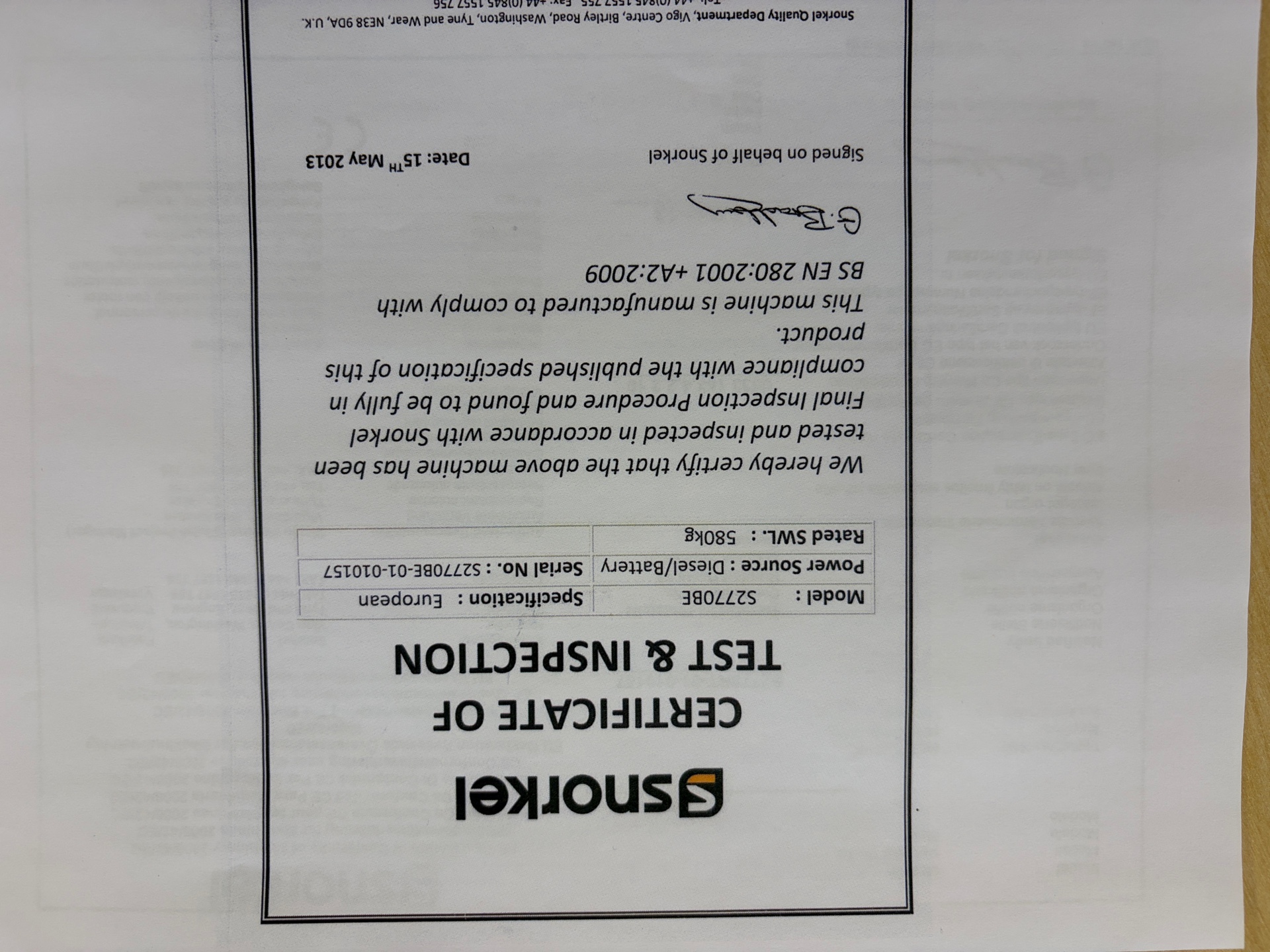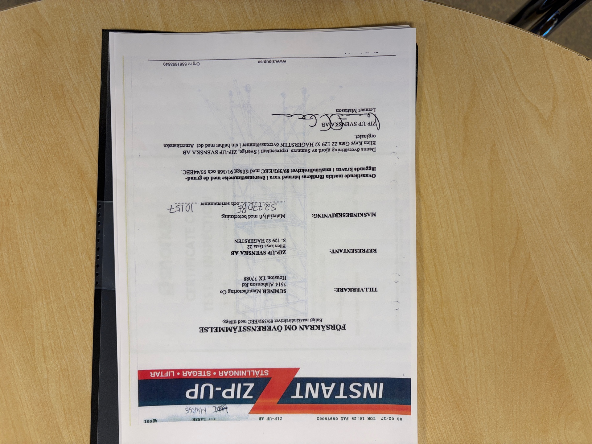 • Serie/chassinummer framgår