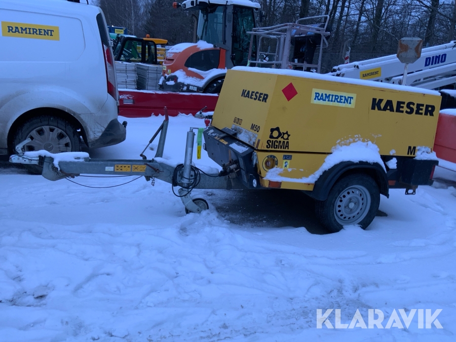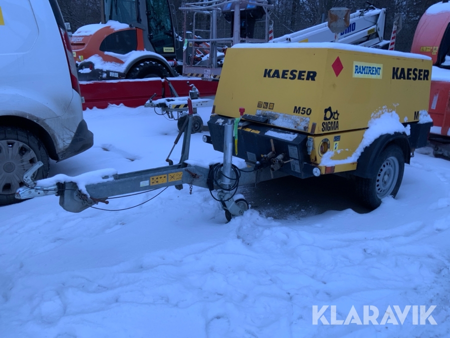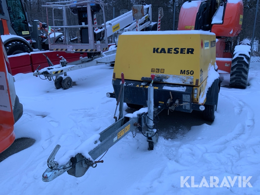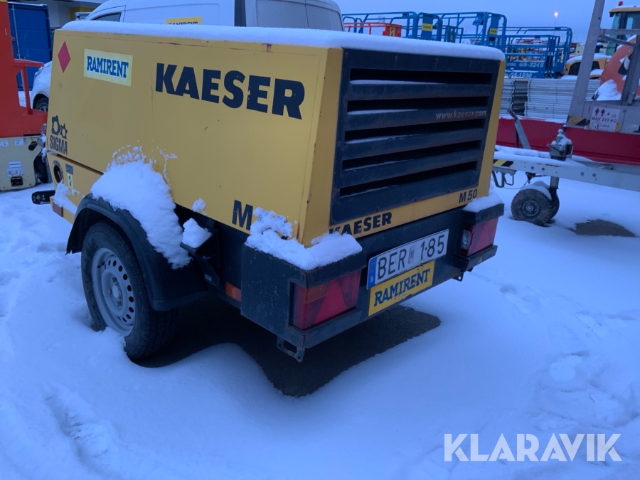 KAESER M50 är den perfekta lösningen för dig som behöver en robust och effektiv mobil kompressor. Med sin kraftfulla dieselmotor och höga prestanda levererar den ett konstant luftflöde även under tuffa förhållanden. Tack vare sin kompakta design och låga vikt är den enkel att transportera och hantera på byggarbetsplatser, vid vägunderhåll eller inom industriella applikationer. Kompressorn producerar 5 m³ luft per minut komprimerad till 7 bar. Det gör M50 perfekt för att driva tre tryckluftshammare eller vid användning av jordraketer. Med full tank väger kompressorn mindre än 750 kg.