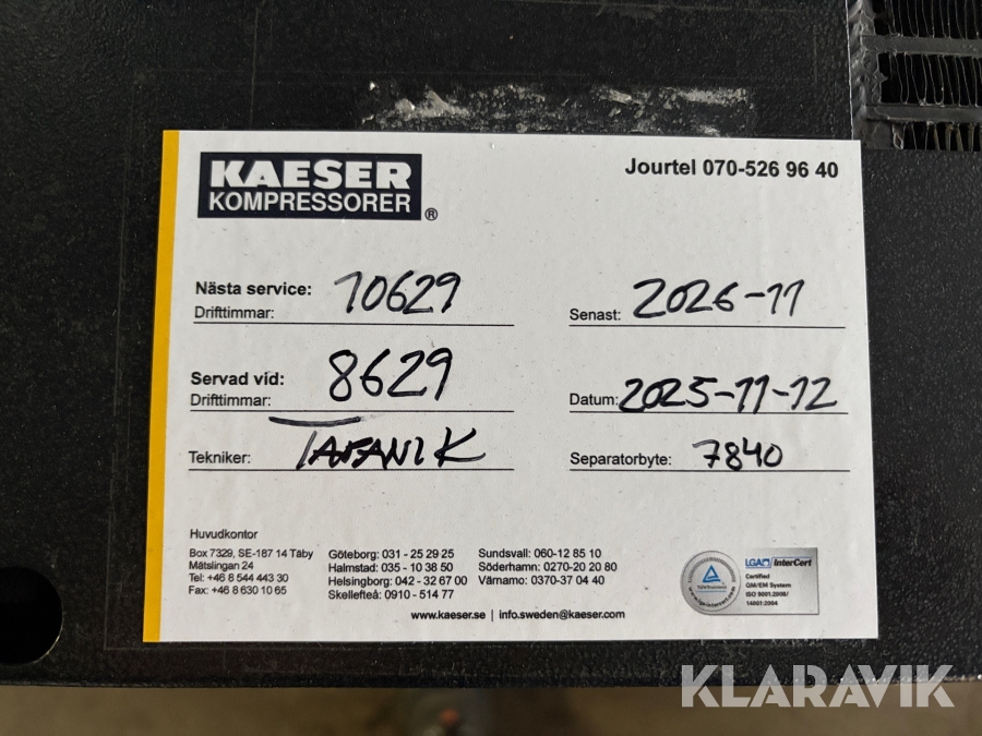 • Serie/chassinummer framgår