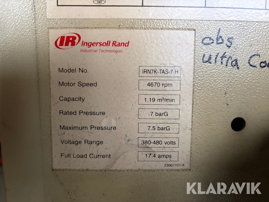 Skruvkompressor Ingersoll Rand IRN7K-TAS-7 H