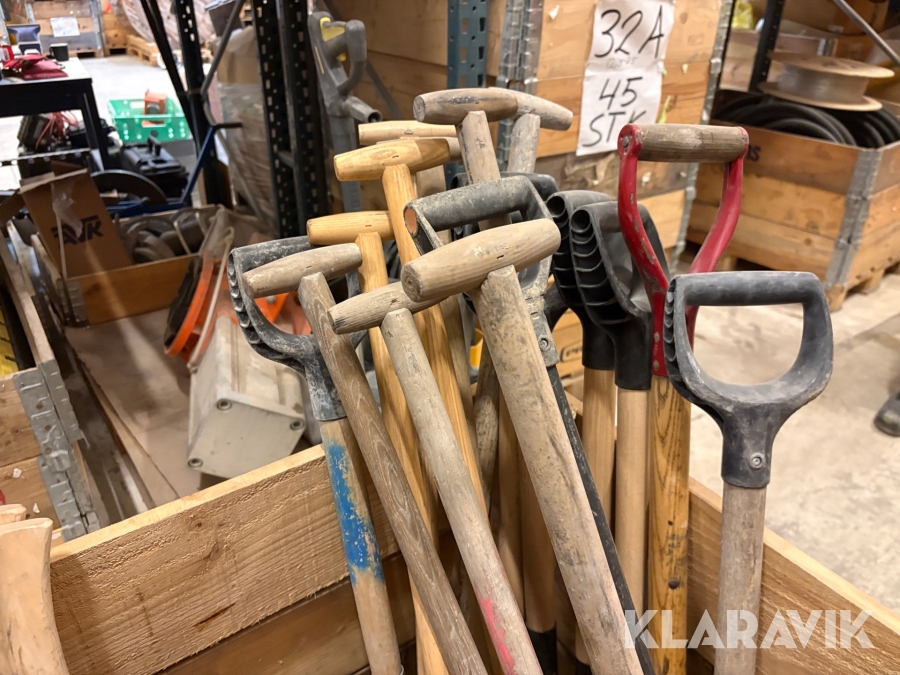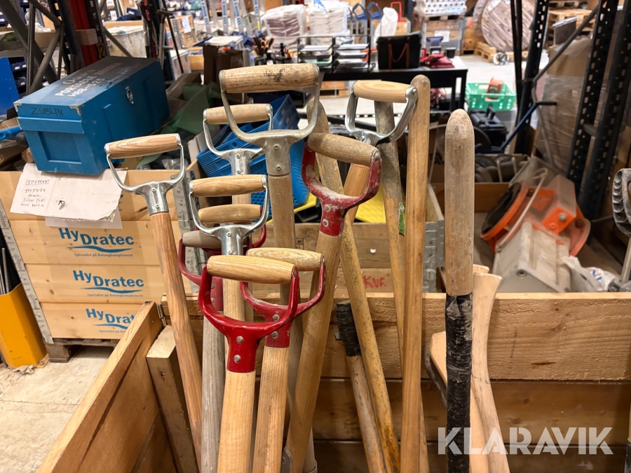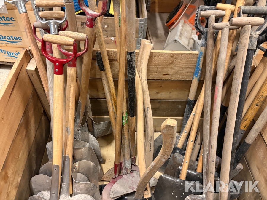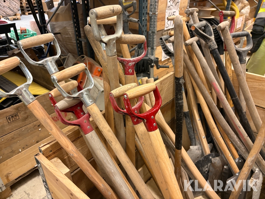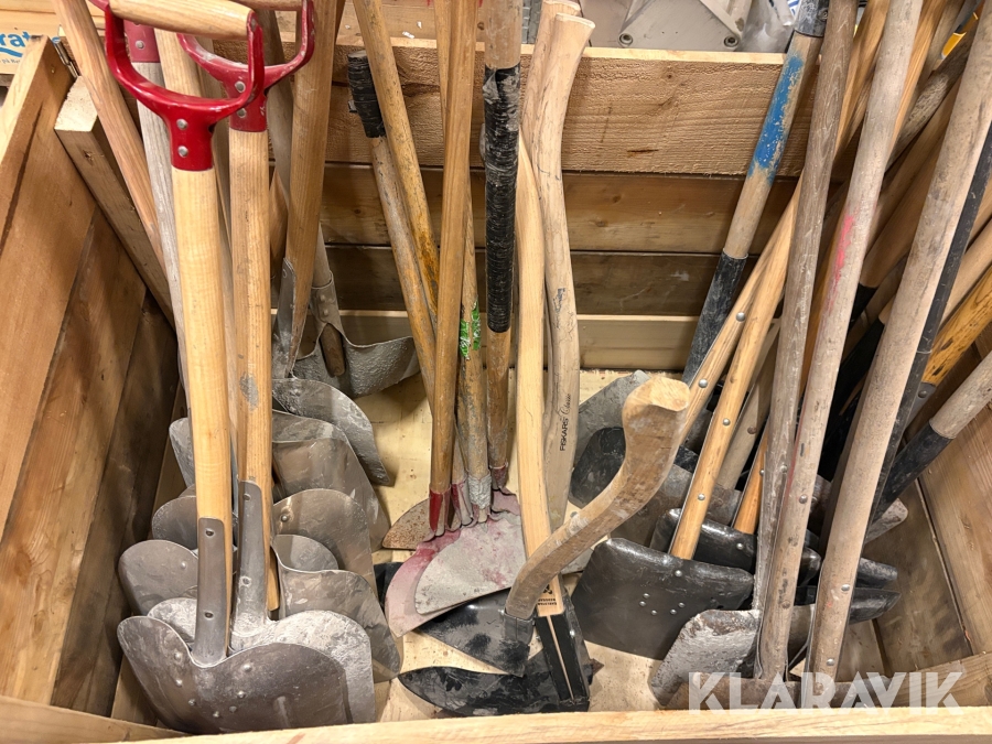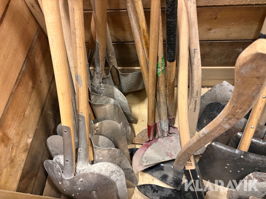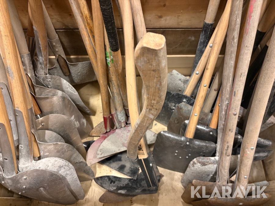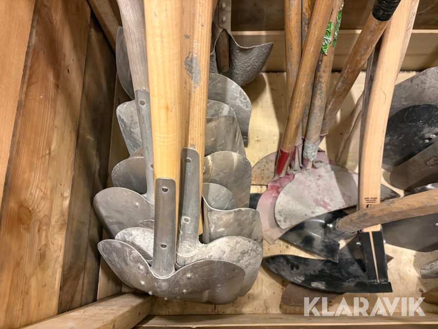 Parti med skyfflar & krattor mm