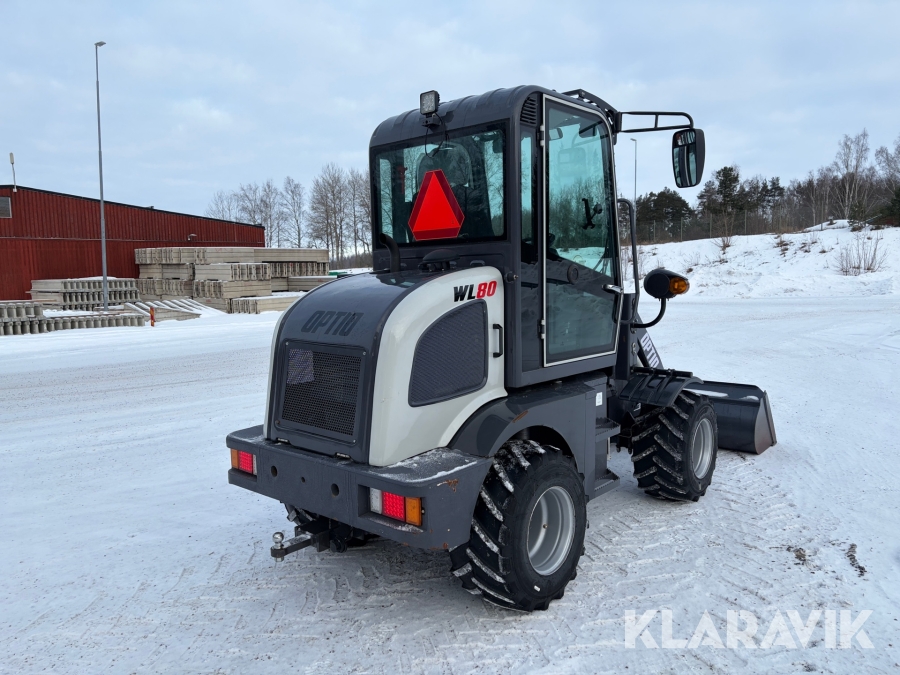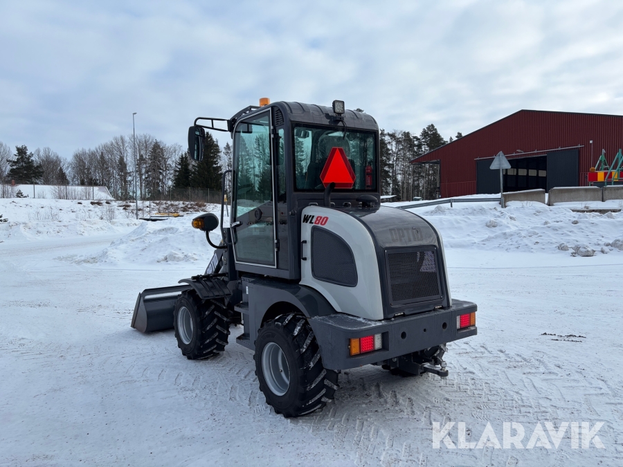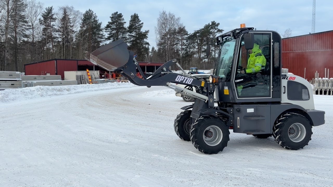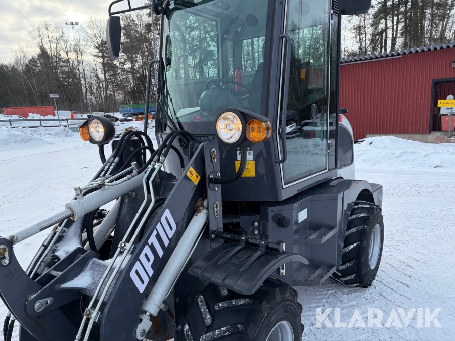 Hjullastare Optio WL80 med gafflar, vikplog, sandspridare, sopvals