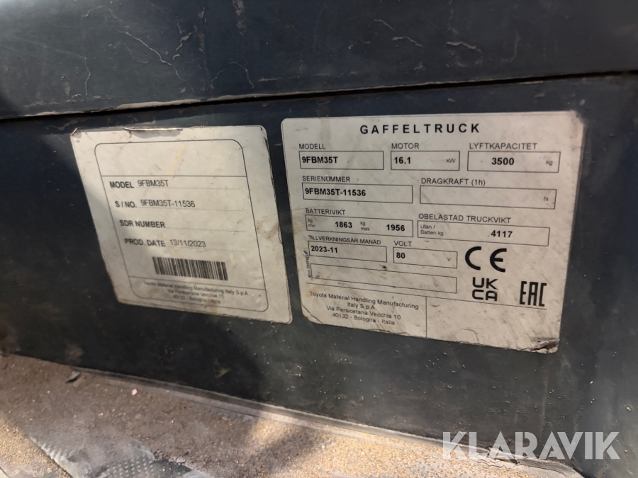 Motviktstruck Toyota 9FBM35T 3500 kg