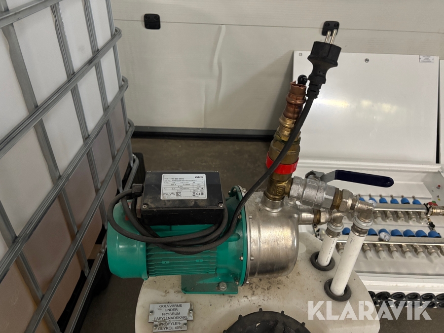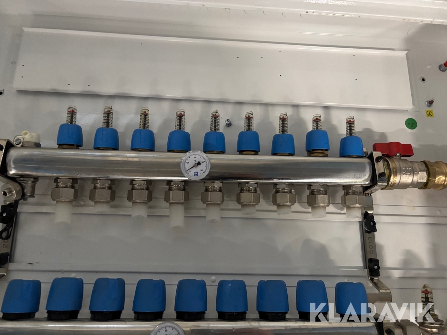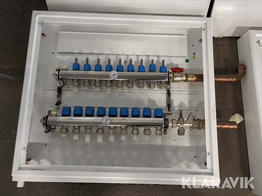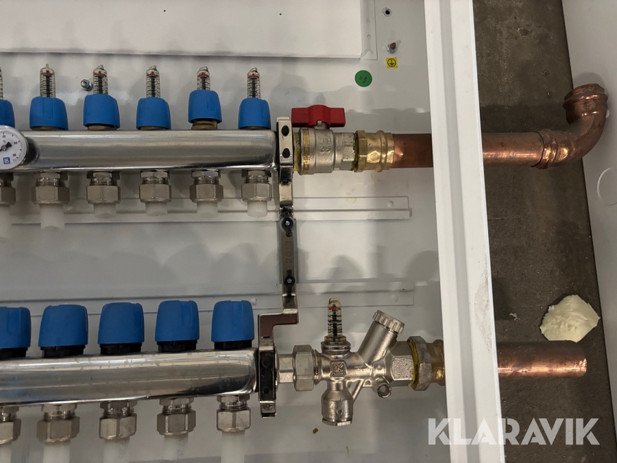 Golvvärmesystem med fördelarskåp, pump och glykol