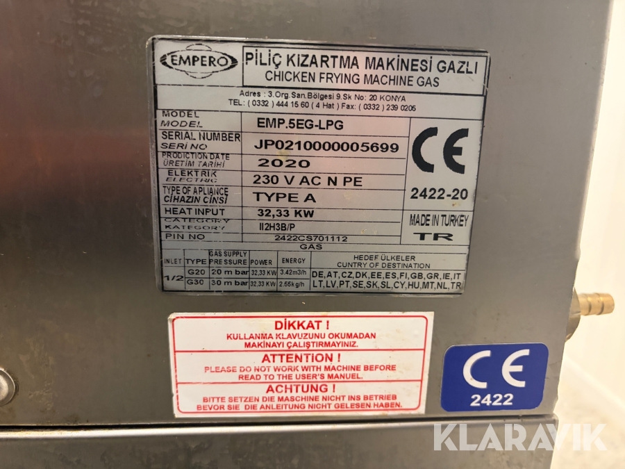 Boka frakt? Det finns ingen specifik information om frakt för just det här objektet, men om du skickar oss en förfrågan via vårt fraktformulär, så undersöker vi möjligheten. Paket, EU-pall eller större maskin? Klaravik har fraktavtal med Schenker och i de fall vi kan hjälpa till med frakt gäller det objekt som ryms i paket eller inom en EU-pall (upp till 120*80 cm och 990 kg). Det går att beställa frakt inom Sverige, dock inte till utlandet. Vid frakt på större maskiner rekommenderar vi gärna transportföretag som du kan kontakta.