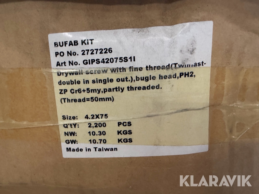 Stort parti med gipsskruv