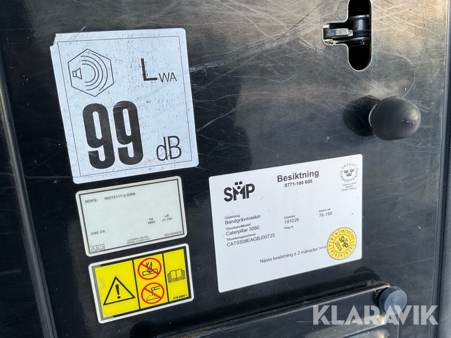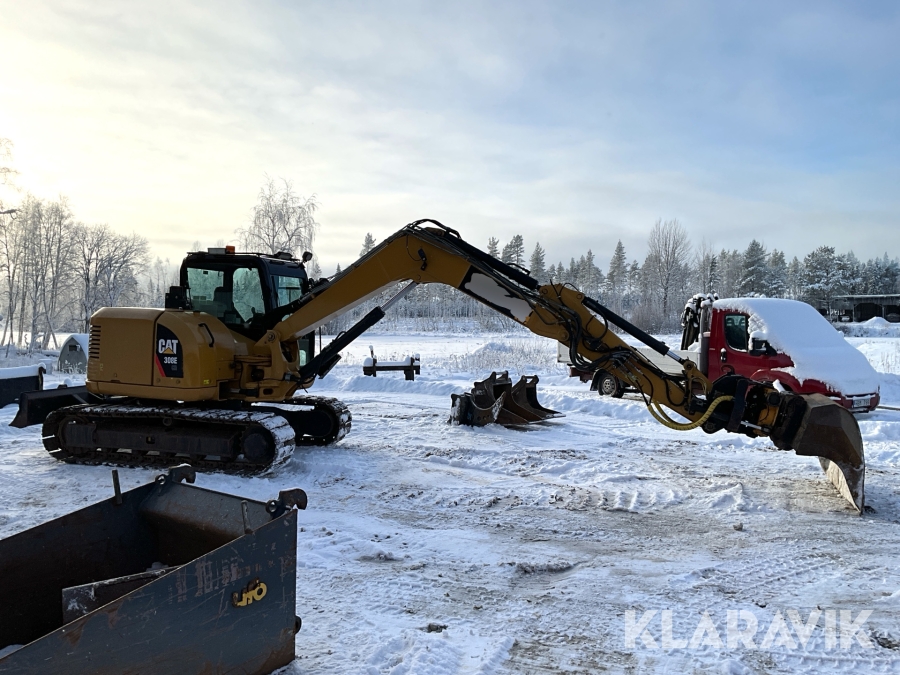 Grävmaskin CAT 308E CR med tiltrotator och flera redskap