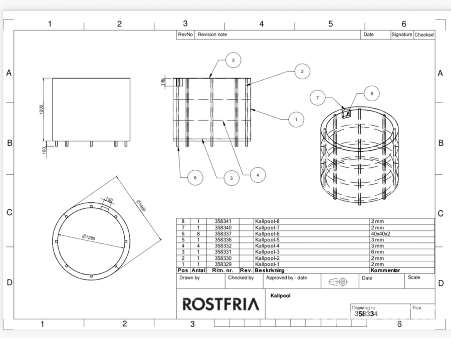 Kallbad i rostfritt stål 1,3 m3