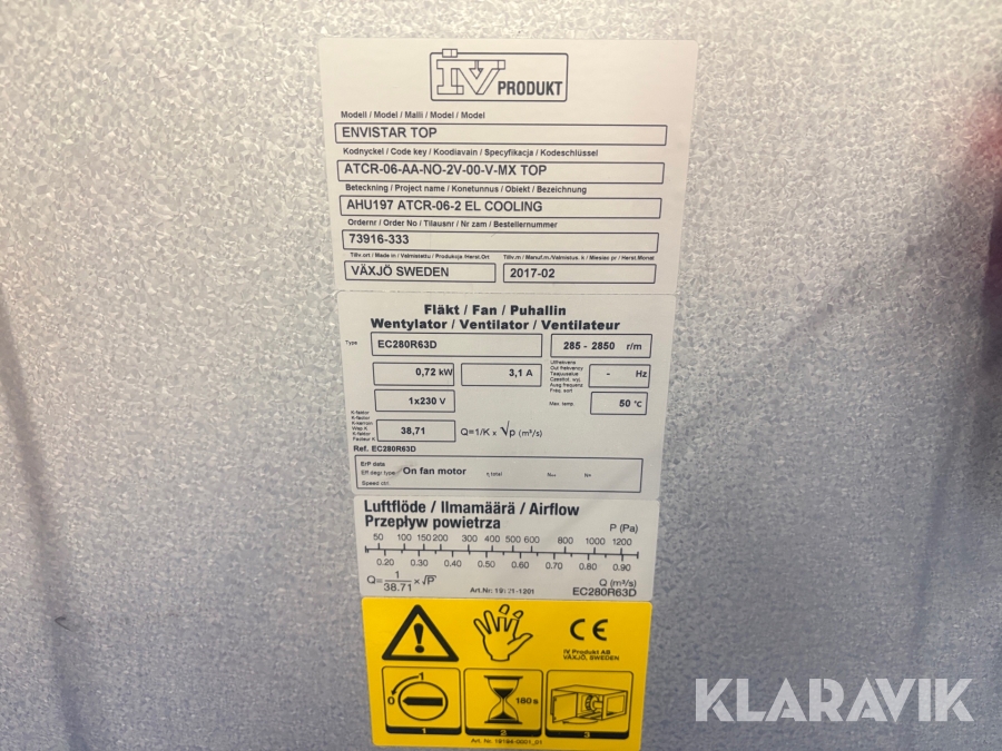Ventilationsaggregat IV Produkter Envistar Top EC280R 63D