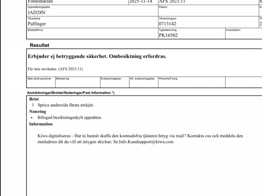 • Serie/chassinummer framgår