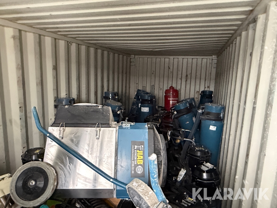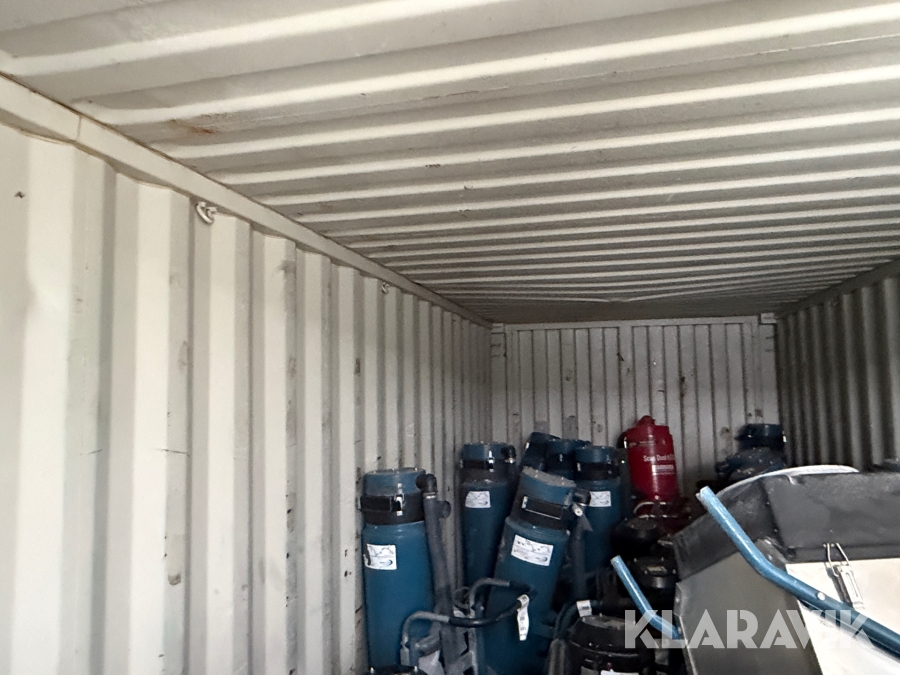 Container 20 fot med bygg inventarier