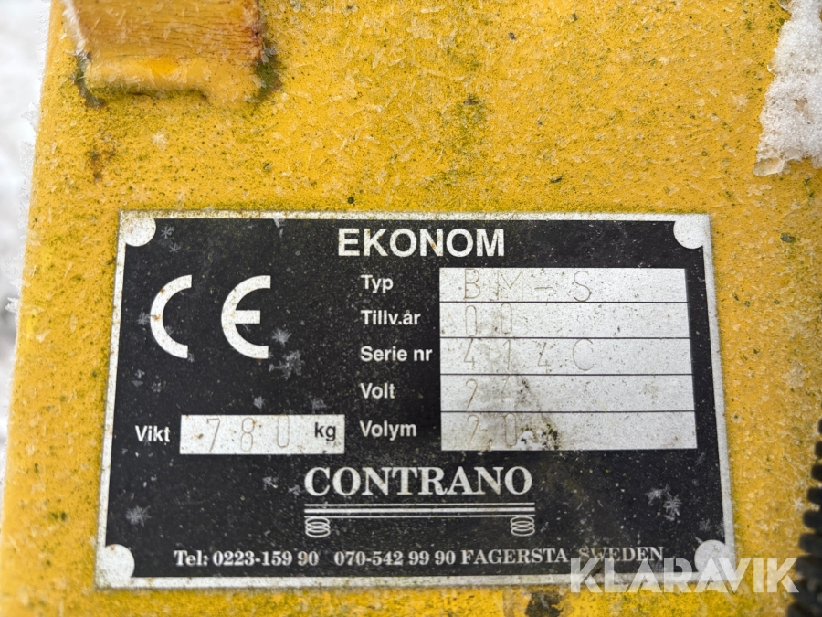 Boka frakt? Det finns ingen specifik information om frakt för just det här objektet, men om du skickar oss en förfrågan via vårt fraktformulär, så undersöker vi möjligheten. Paket, EU-pall eller större maskin? Klaravik har fraktavtal med Schenker och i de fall vi kan hjälpa till med frakt gäller det objekt som ryms i paket eller inom en EU-pall (upp till 120*80 cm och 990 kg). Det går att beställa frakt inom Sverige, dock inte till utlandet. Vid frakt på större maskiner rekommenderar vi gärna transportföretag som du kan kontakta.