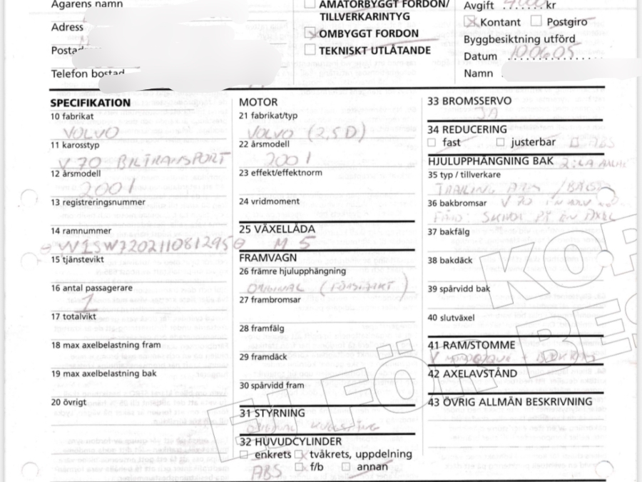 • Serie/chassinummer framgår