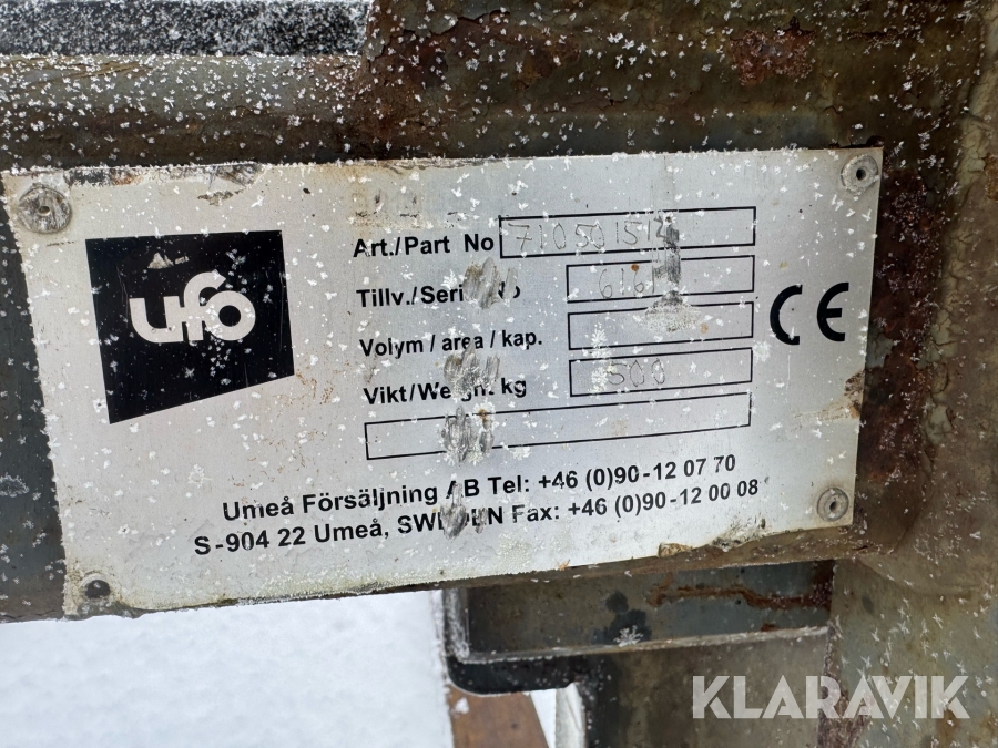 Boka frakt? Det finns ingen specifik information om frakt för just det här objektet, men om du skickar oss en förfrågan via vårt fraktformulär, så undersöker vi möjligheten. Paket, EU-pall eller större maskin? Klaravik har fraktavtal med Schenker och i de fall vi kan hjälpa till med frakt gäller det objekt som ryms i paket eller inom en EU-pall (upp till 120*80 cm och 990 kg). Det går att beställa frakt inom Sverige, dock inte till utlandet. Vid frakt på större maskiner rekommenderar vi gärna transportföretag som du kan kontakta.