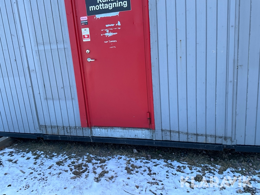 For sheds and containers (10 feet and larger), loading assistance can be purchased. Payment is made either by invoice or by card at the seller's location. The cost per lift is SEK 500 + VAT.